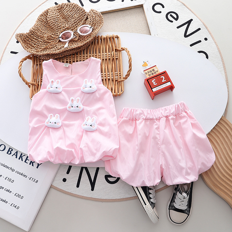 여자 여름 세트 여름 새로운 귀여운 프라이드 스트리트 5 3 차원 토끼 머리 조끼 세트 트렌디스토어 가기