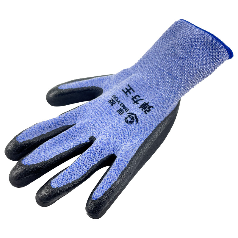 Baoyou 담근 블루 원사 블랙 고무 내마모성 통기성 고 탄성 라텍스 폼 미끄럼 방지 처리 노동 보호 노동 보호 장갑