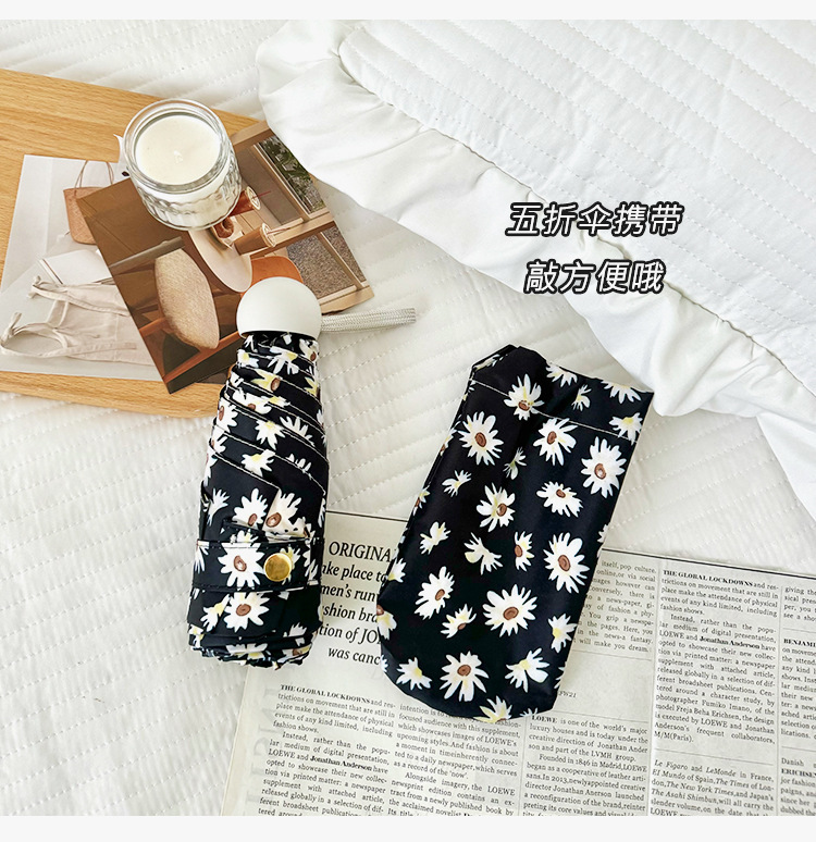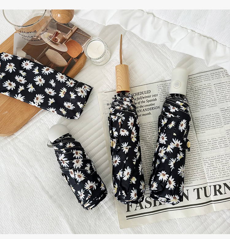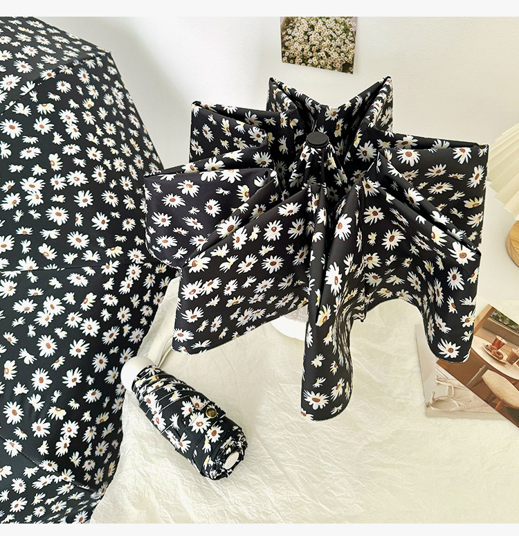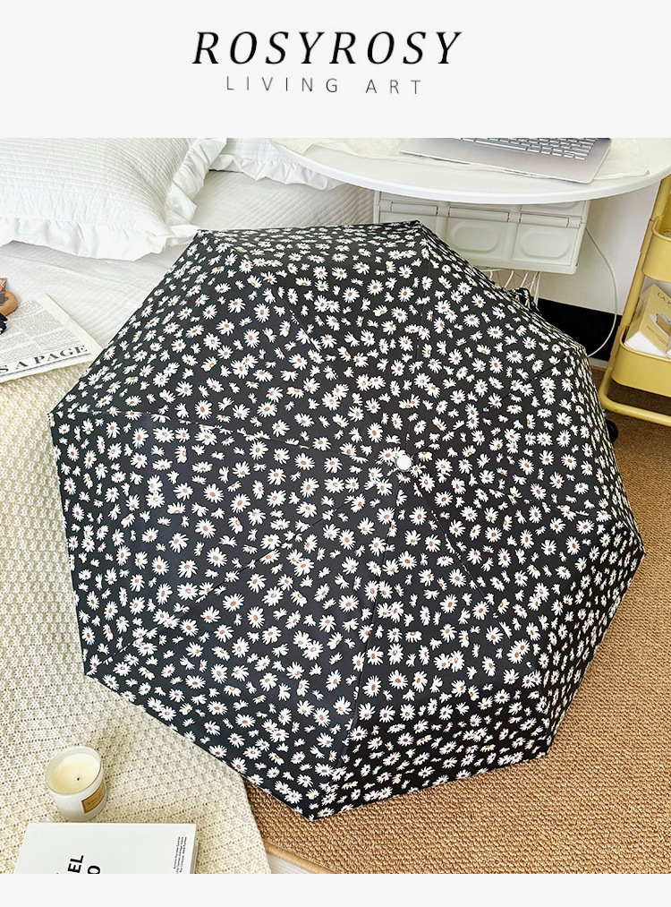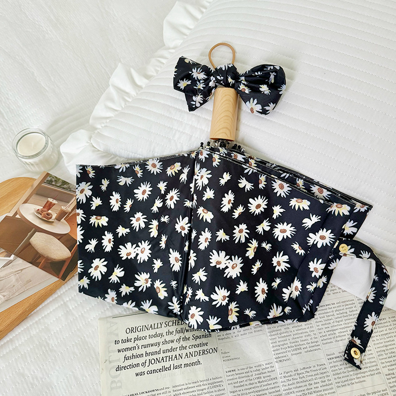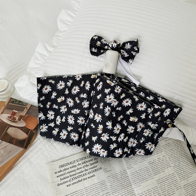검은 데이지 우산 햇빛과 비 이중 목적 선 스크린 UV 우산 강하고 튼튼한 여성 우산스토어 가기