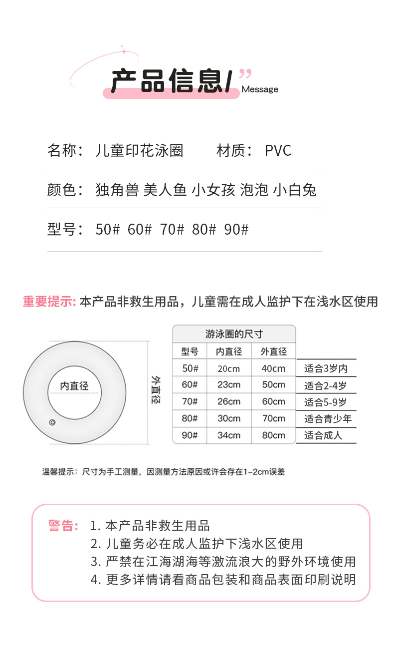 어린이 수영 반지 두꺼운 생활 부표 안티 롤오버 소년 및 소녀 아기 만화 팽창식 속옷 반지 인어