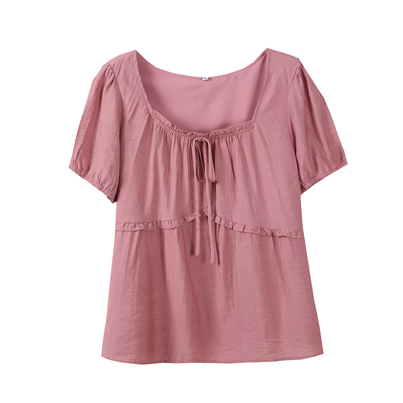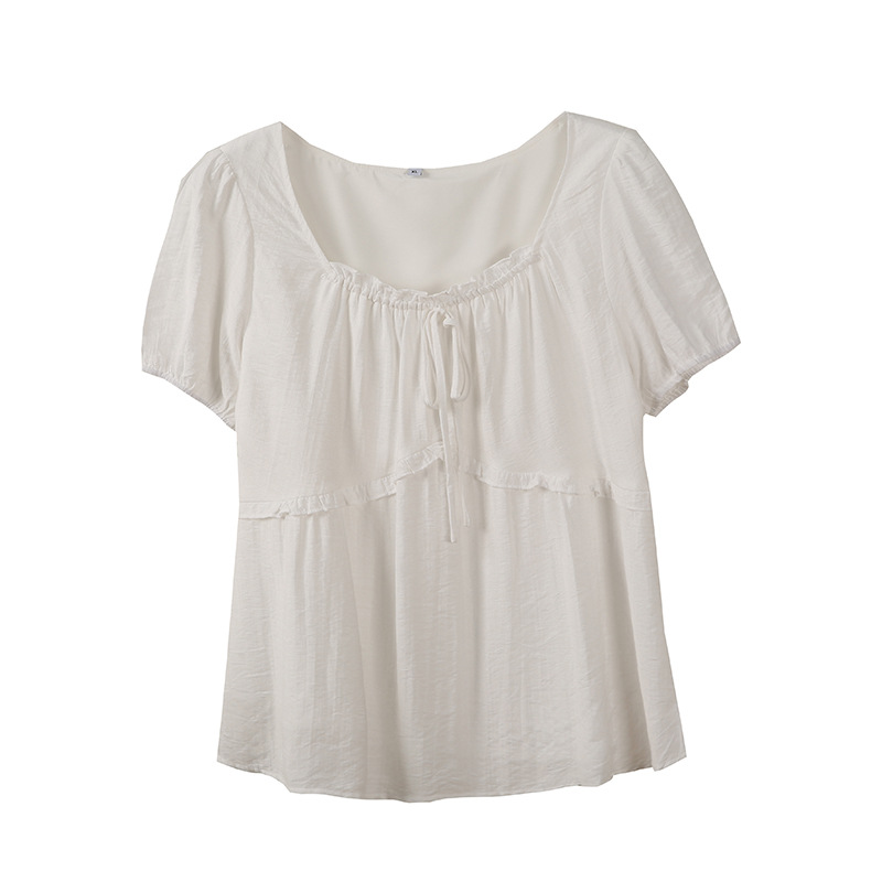 Inno 플러스 사이즈 여성용 스위트 베이비돌 셔츠 여름 신작 프랑스 스타일 스퀘어 넥 퍼프 슬리브 셔츠 240361