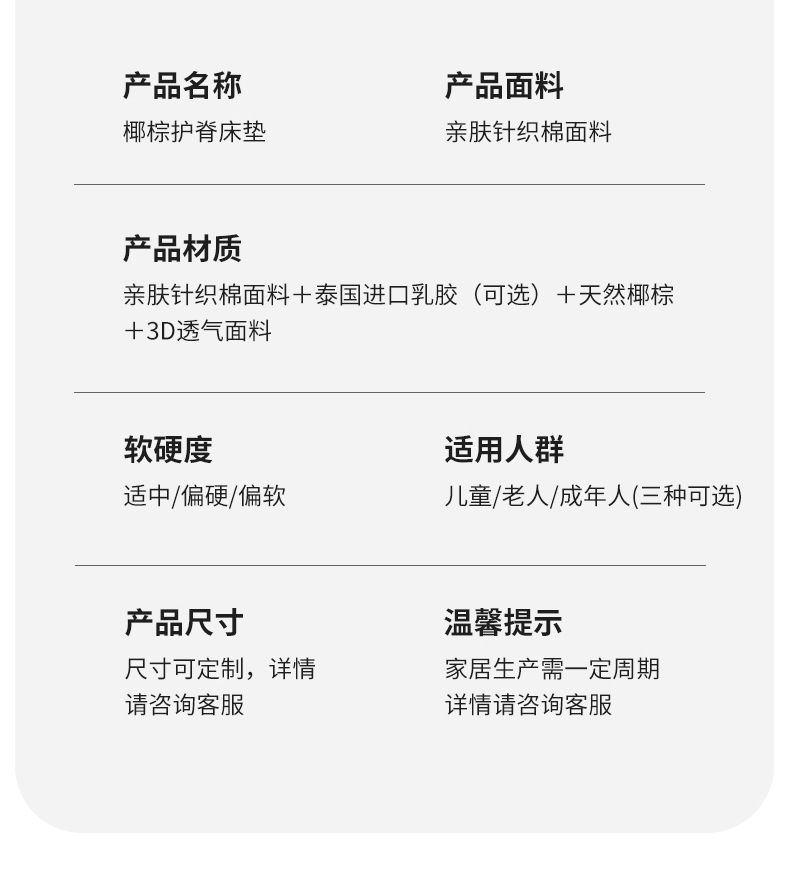 • 10cm (피부 친화적 인 니트 직물 3cm 라텍스 능선 코코넛 야자)