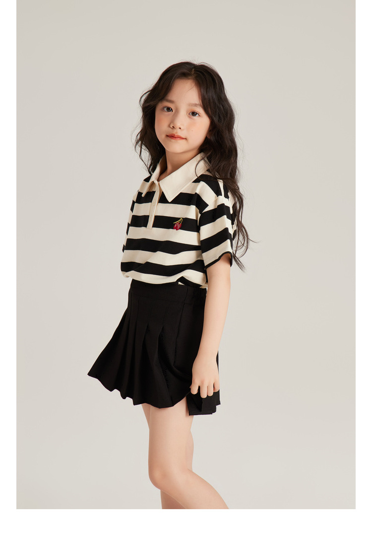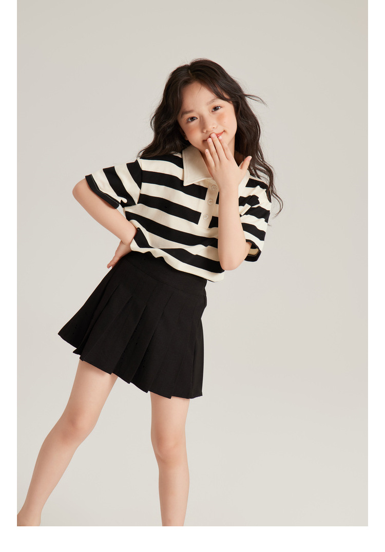 Amybaby girls 티셔츠 2024 새로운 어린이 폴로 셔츠 여름 짧은 소매 대학 스타일 탑스토어 가기