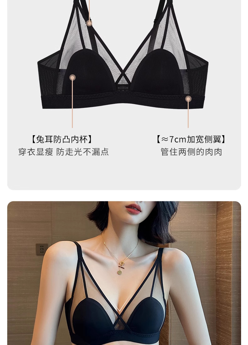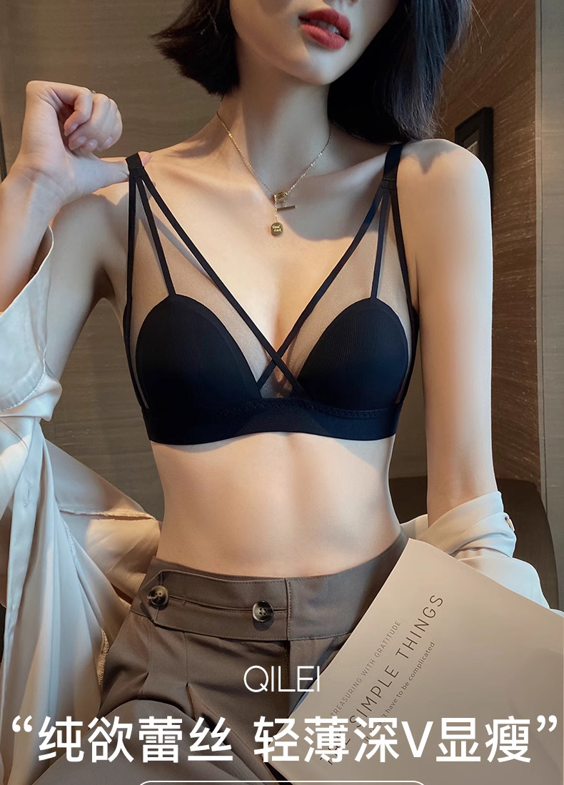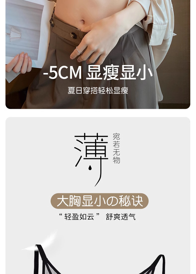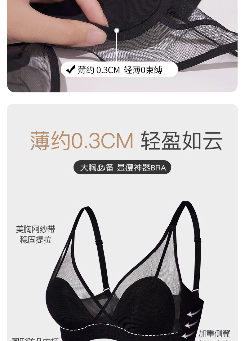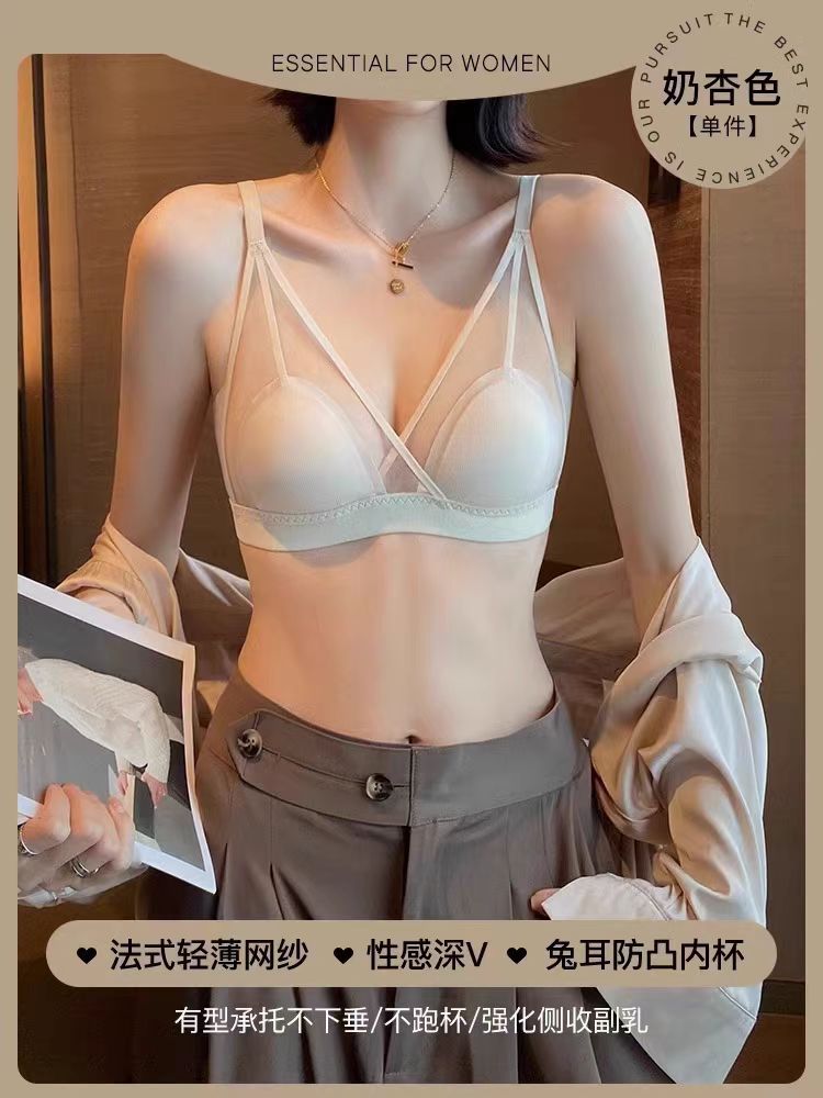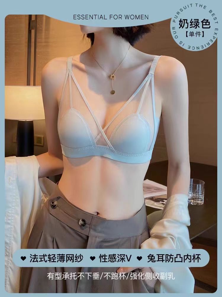 프랑스 스타일 여성 속옷 여름용 얇은 모델 큰 가슴을 더 작아 보이게 하는 노와이어 초박형 섹시 통기성 삼각형 abc컵 레이스 브라스토어 가기