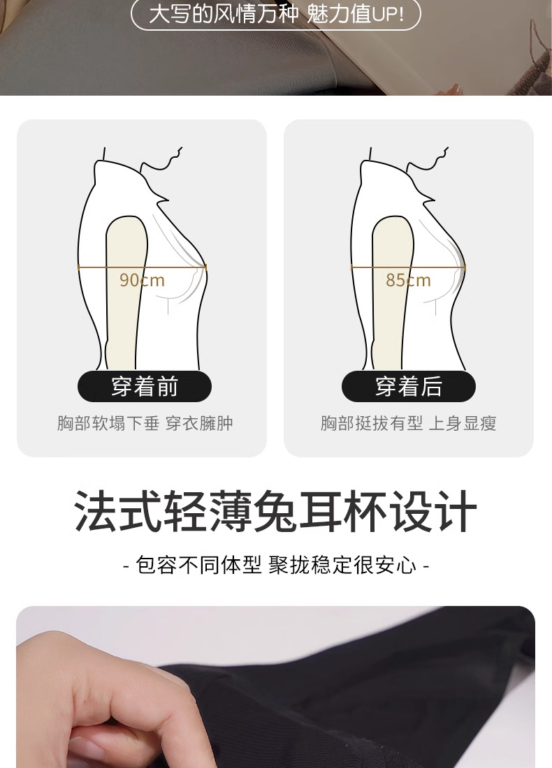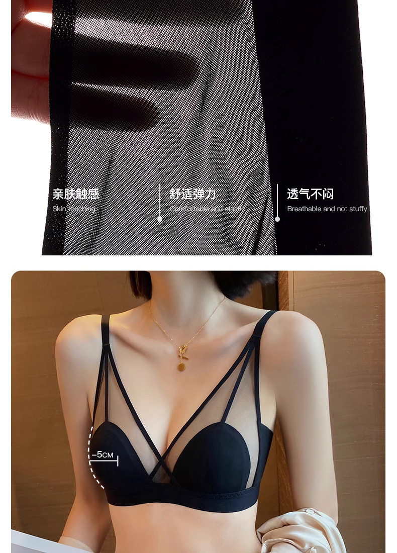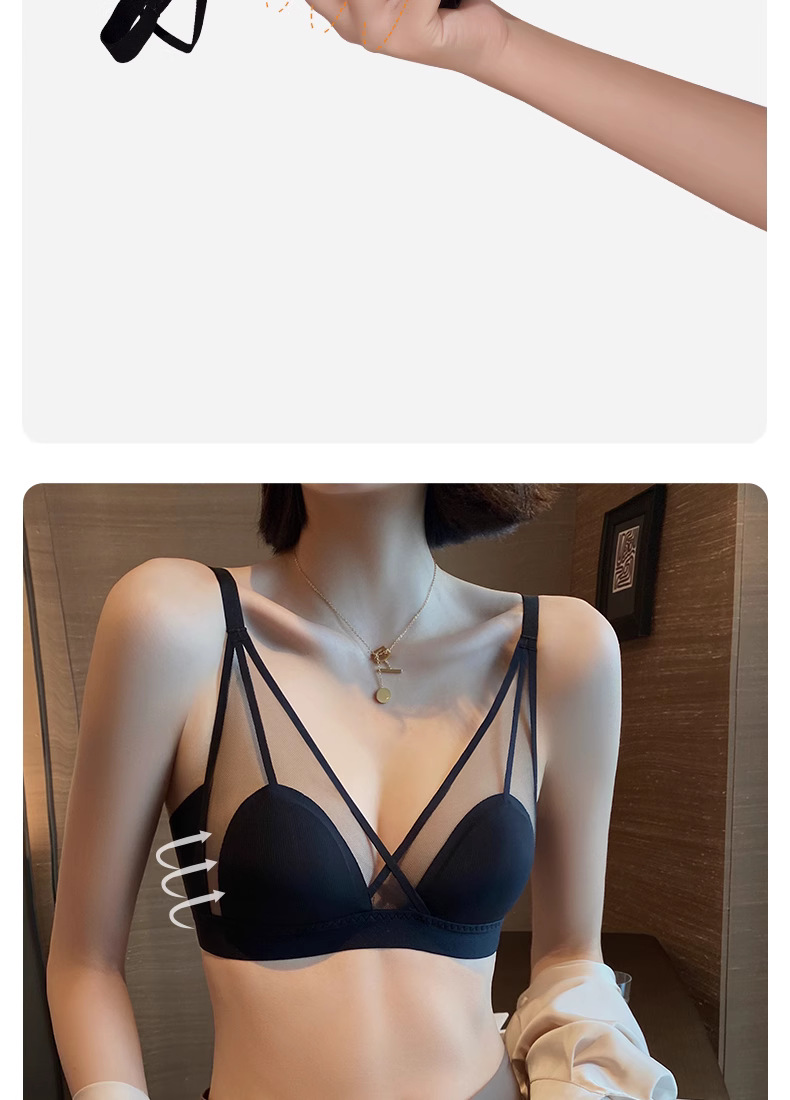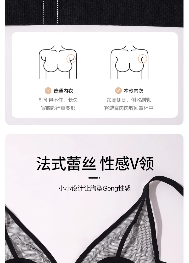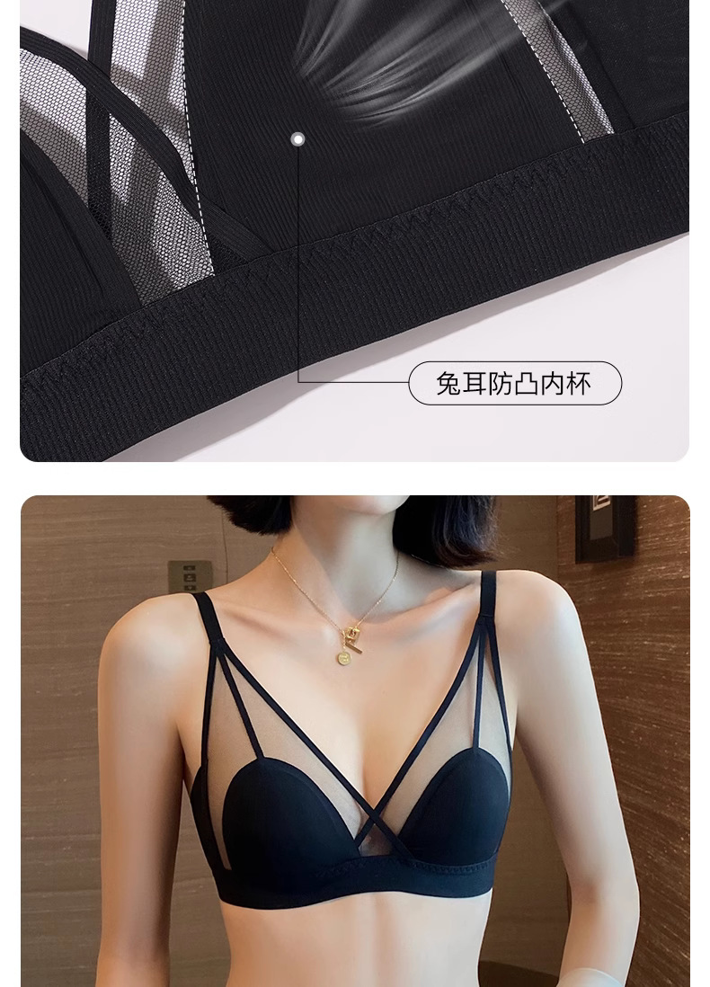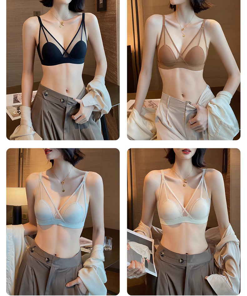 프랑스 스타일 여성 속옷 여름용 얇은 모델 큰 가슴을 더 작아 보이게 하는 노와이어 초박형 섹시 통기성 삼각형 abc컵 레이스 브라스토어 가기