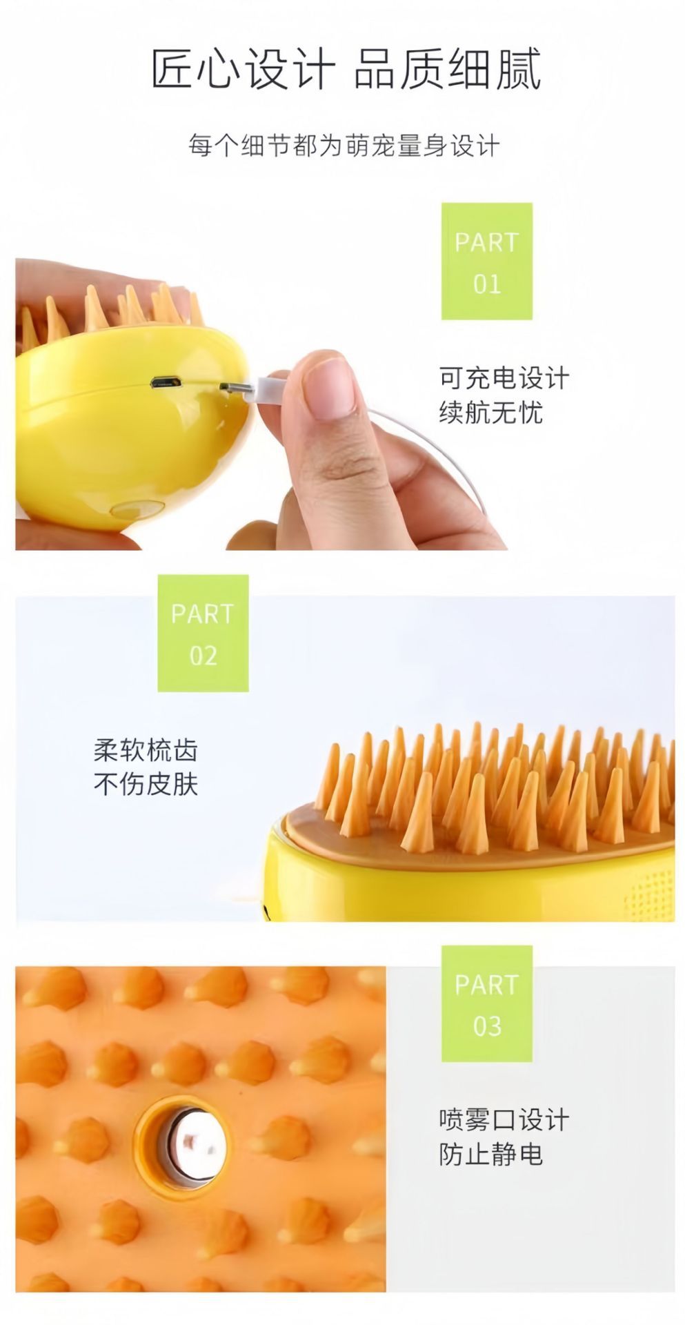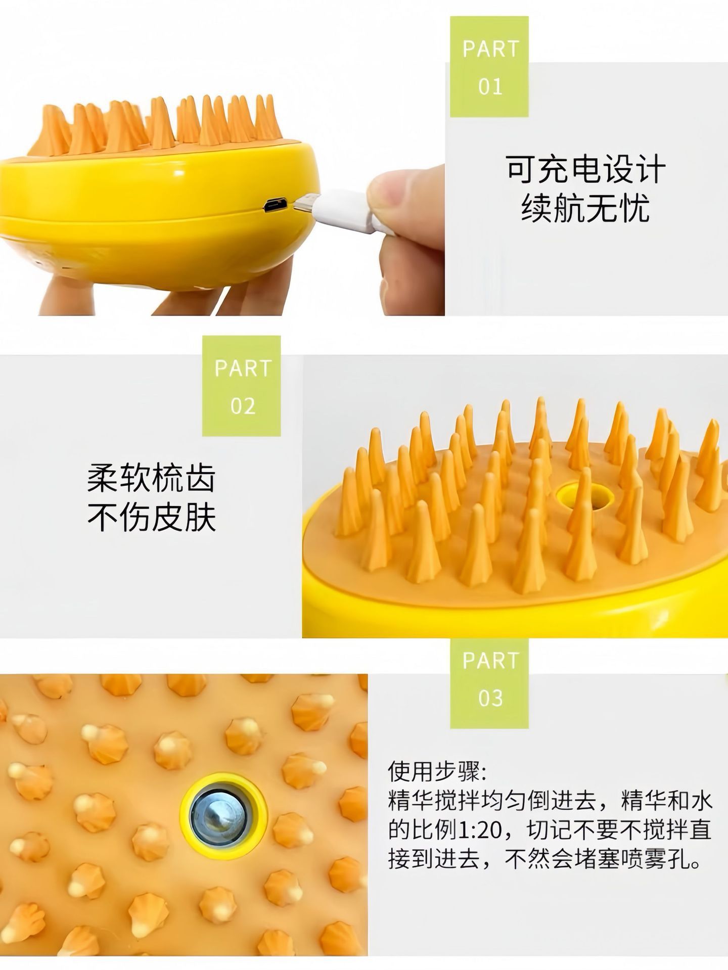 새로운 애완 동물 전기 원 버튼 스프레이 빗 고양이와 개 마사지 특수 청소 마술 목욕 안티 플라이 플로팅 헤어
