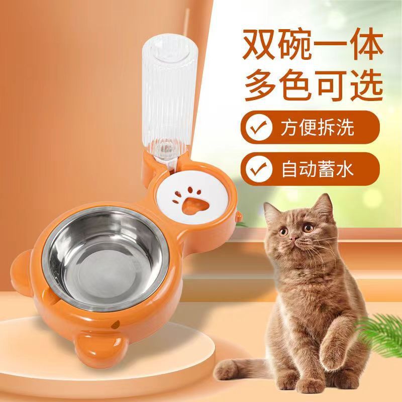 더블 그릇 자동 마시는 고양이 음식 분지 애완 동물 더블 그릇 고양이 그릇 물 음식 통합 고양이 스테인리스 고양이 그릇