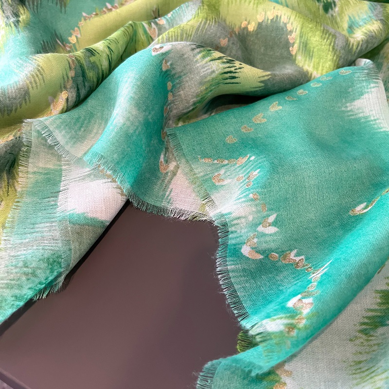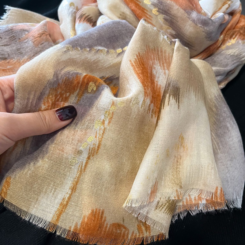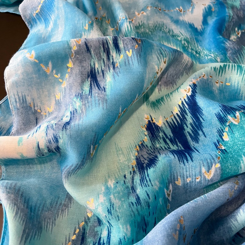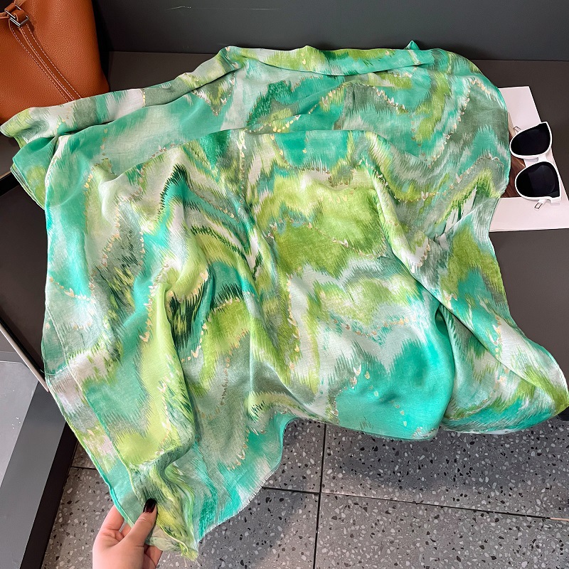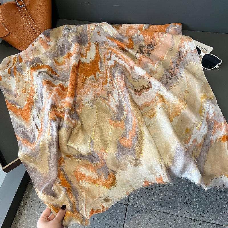 여름 화재 구름 작은 예술적 색면 및 린넨 스카프 여자 올 매치 봄과 여름 실크 스카프 해변 여행 목도리스토어 가기