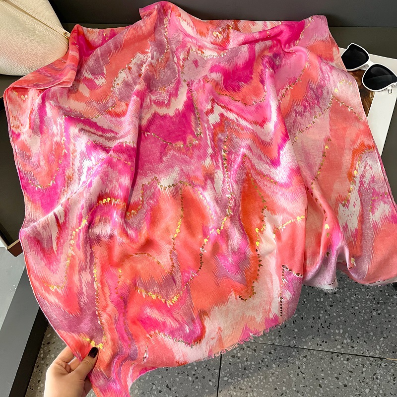 여름 화재 구름 작은 예술적 색면 및 린넨 스카프 여자 올 매치 봄과 여름 실크 스카프 해변 여행 목도리