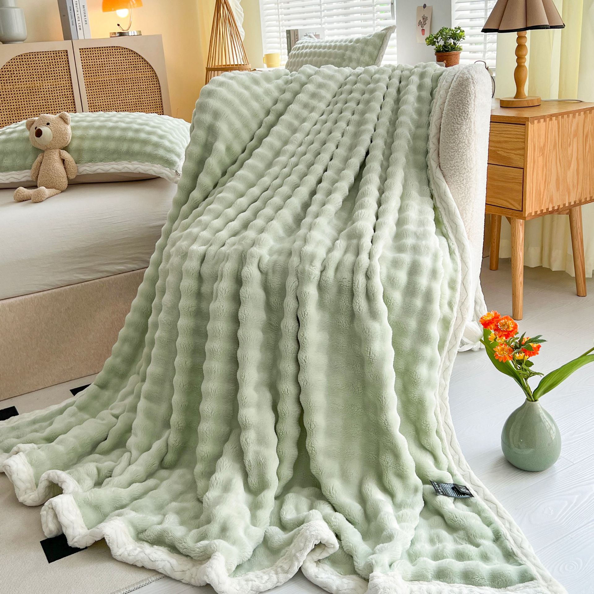 고중량 버블 토끼 플란넬 담요 에어컨 소파 던지기 담요 선물 캐주얼 산호 양털 작은 담요스토어 가기