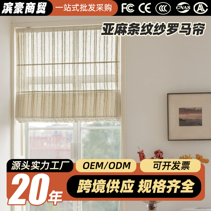 리넨 스트라이프 원사 로마 커튼 거실 식당 반투명 연구 베이 창 식당 리프팅 커튼 도매
