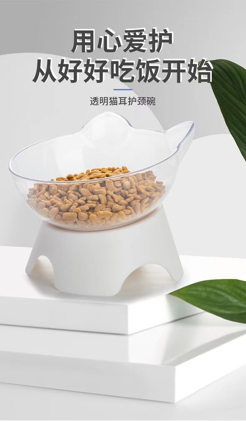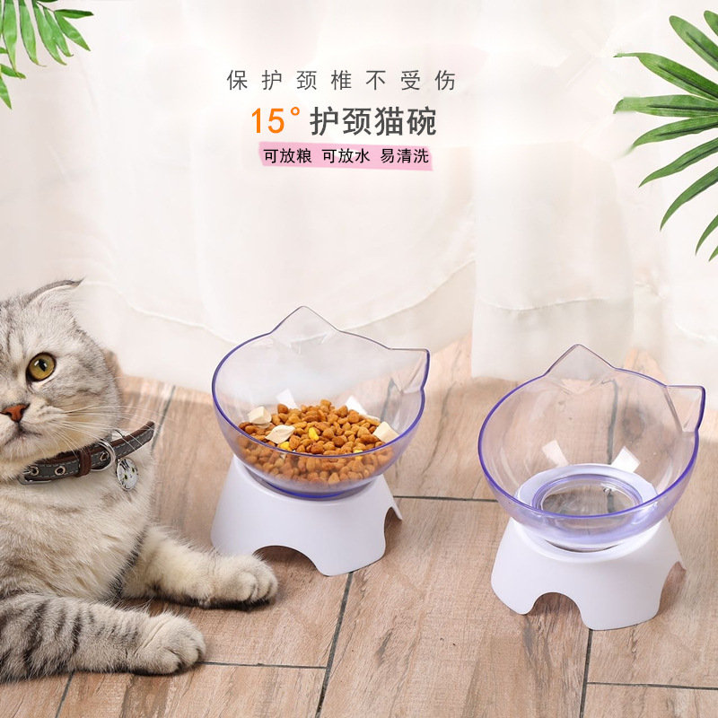 고양이 그릇 애완 동물 이중 보호 자궁 경부 척추 먹이 식수 장치 투명한 플라스틱 식품 분지 높은 발 애완 동물 그릇 공장 아울렛