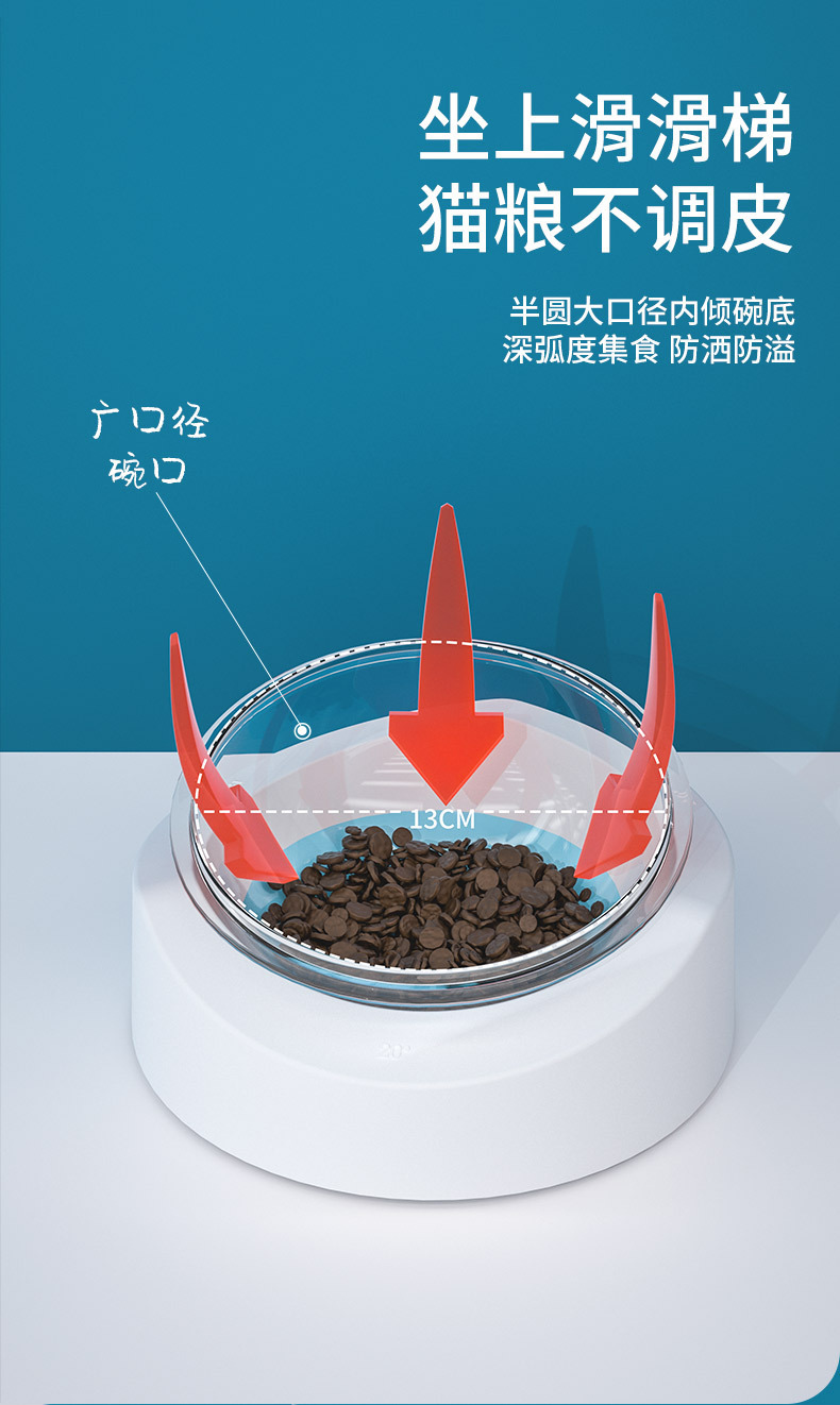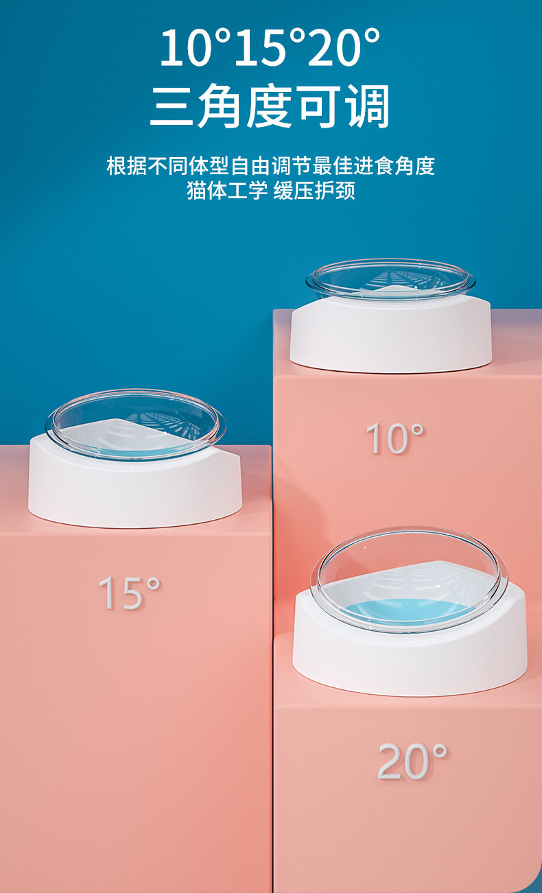 고양이 그릇 전복 방지 애완 동물 그릇 대형 직경 식수 장치 개 분지 삼각형 조정 가능한 애완 동물 피더 마시는 분지스토어 가기