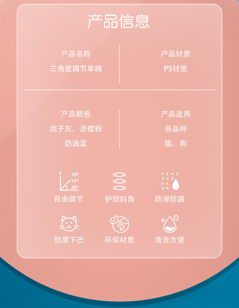 고양이 그릇 전복 방지 애완 동물 그릇 대형 직경 식수 장치 개 분지 삼각형 조정 가능한 애완 동물 피더 마시는 분지