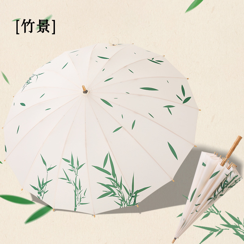 • 【16본】대나무 언어-대나무 손잡이 전체 대나무 복고풍 우산