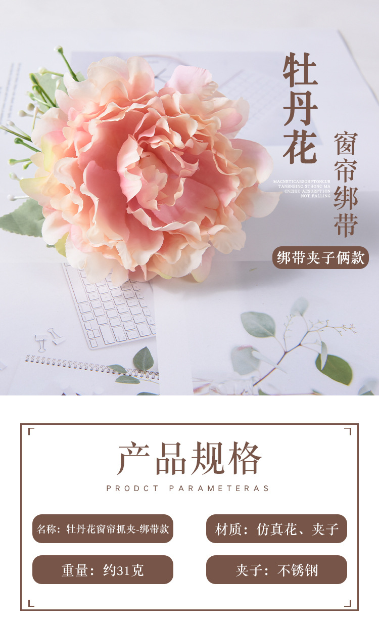 커튼 스트랩 북유럽 커튼 클립 모란 꽃 인공 꽃 창조적 인 우아한 간단한 꽃 웨딩 룸 장식