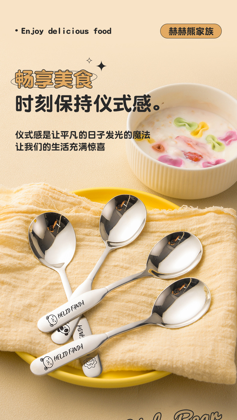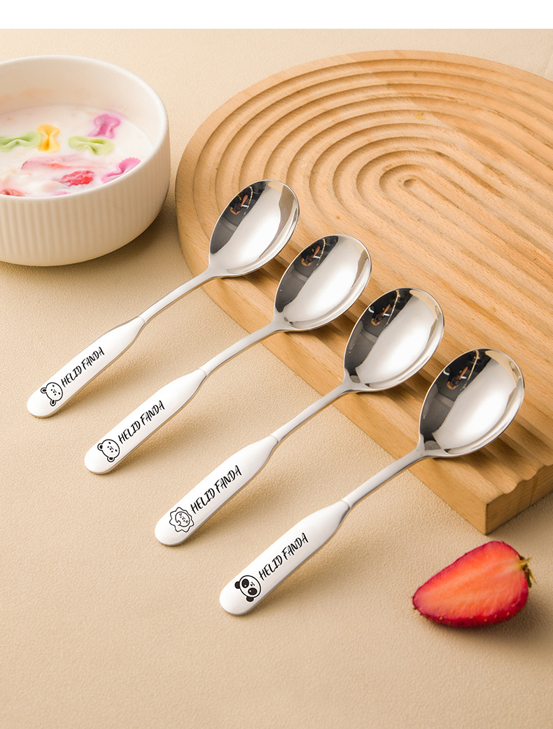 창조적 인 고 가치 아기의 긴 손잡이 숟가락 가정용 저녁 식사 디저트 스푼 스푼 아이스크림 혼합 숟가락 둥근 머리 숟가락