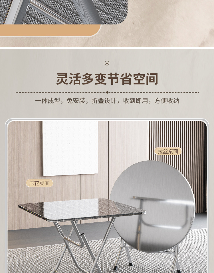 스테인리스 접이식 테이블, 접이식 원형 테이블, 작은 사각 테이블, 식탁, 상업용 식탁, 가정용 테이블 및 의자, 정사각형 테이블스토어 가기