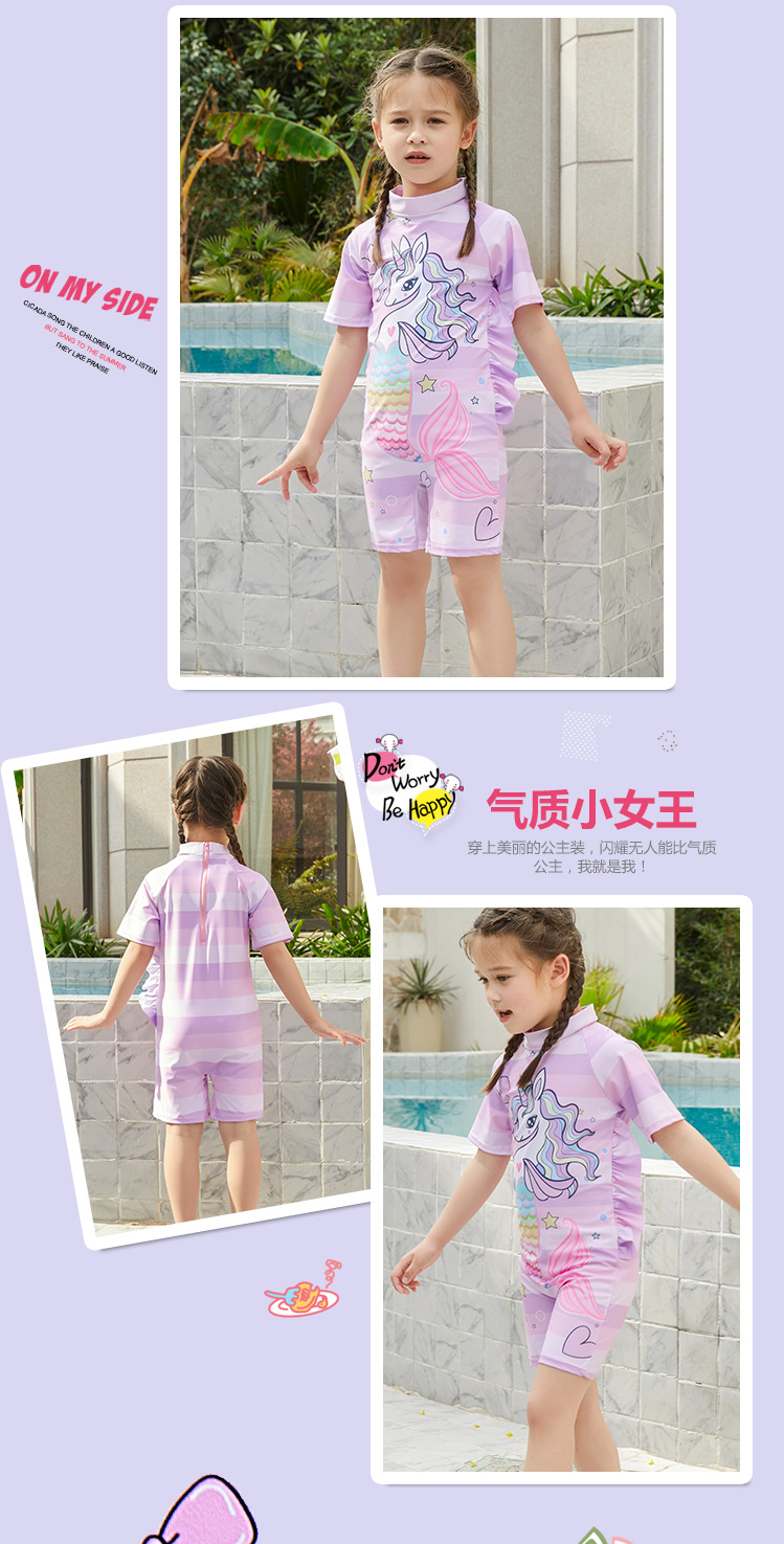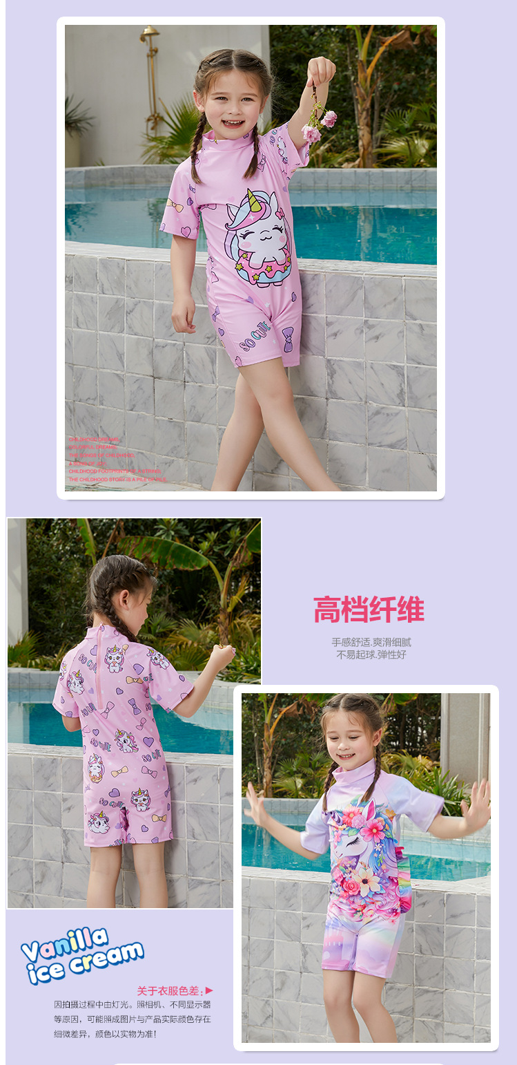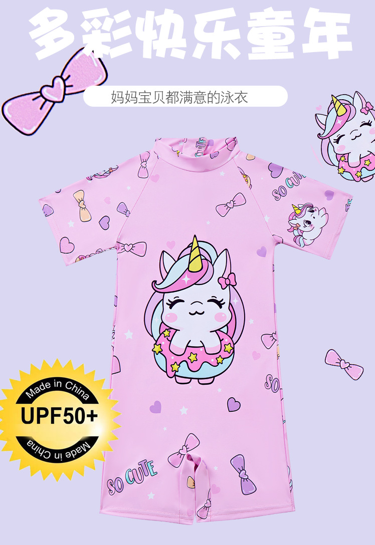 외국 무역 아동 수영복 여아 원피스 만화 캐릭터 반팔 자외선 차단 수영복 서핑복 아동용 비치웨어