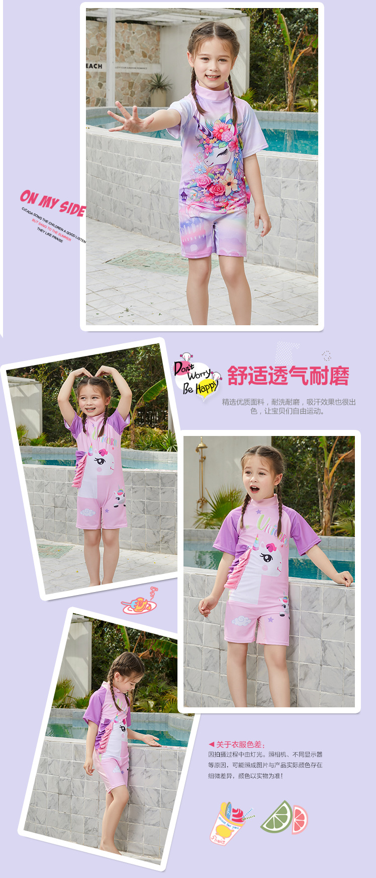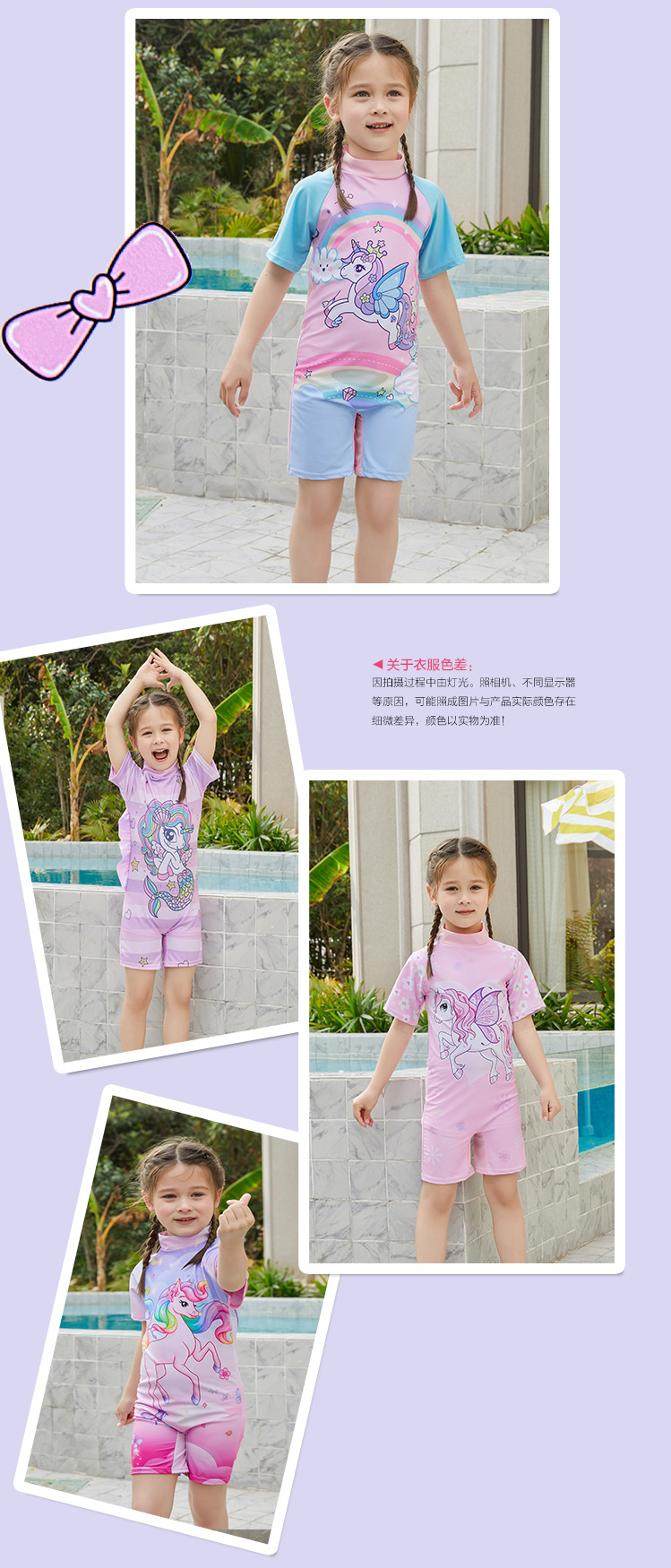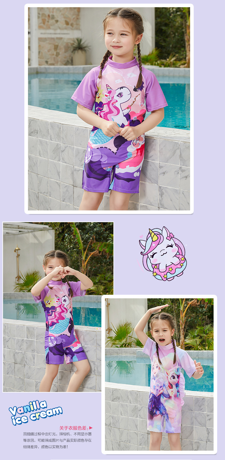 외국 무역 아동 수영복 여아 원피스 만화 캐릭터 반팔 자외선 차단 수영복 서핑복 아동용 비치웨어
