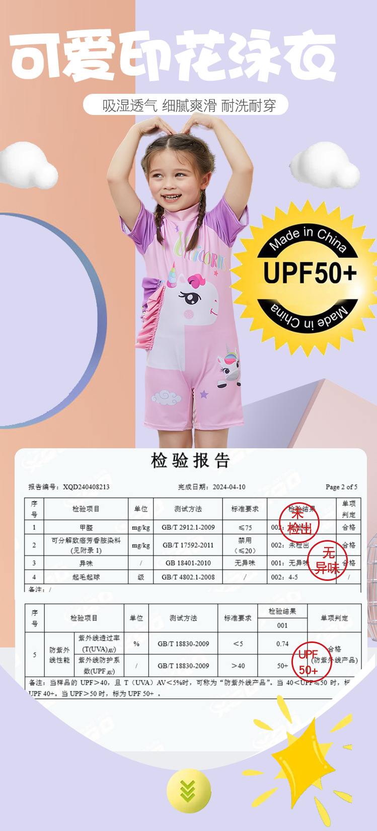 외국 무역 아동 수영복 여아 원피스 만화 캐릭터 반팔 자외선 차단 수영복 서핑복 아동용 비치웨어스토어 가기