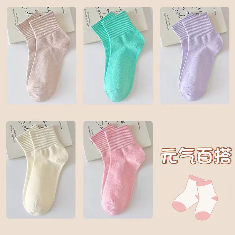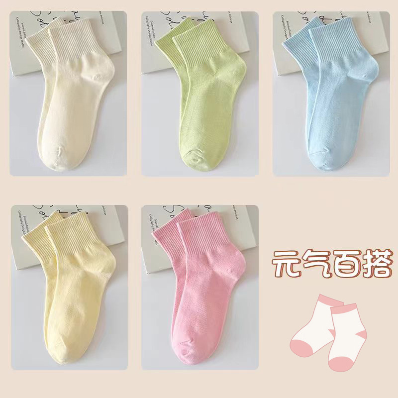 단색 양말 어린이 짧은 튜브 얇은 통기성 면화 조수 캔디 컬러 흰색 양말 올 매치 학생 도매스토어 가기