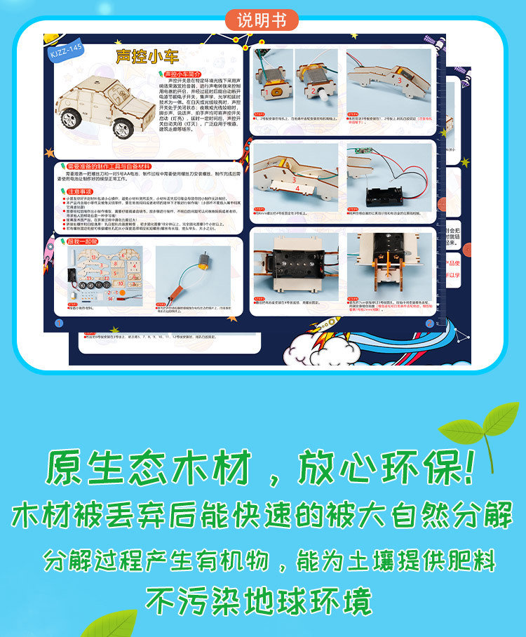 DIY 음성 제어 자동차 학생 창의적 과학 기술 소형 제작 수공예 교육용 조립 장난감 과학 실험 재료 세트