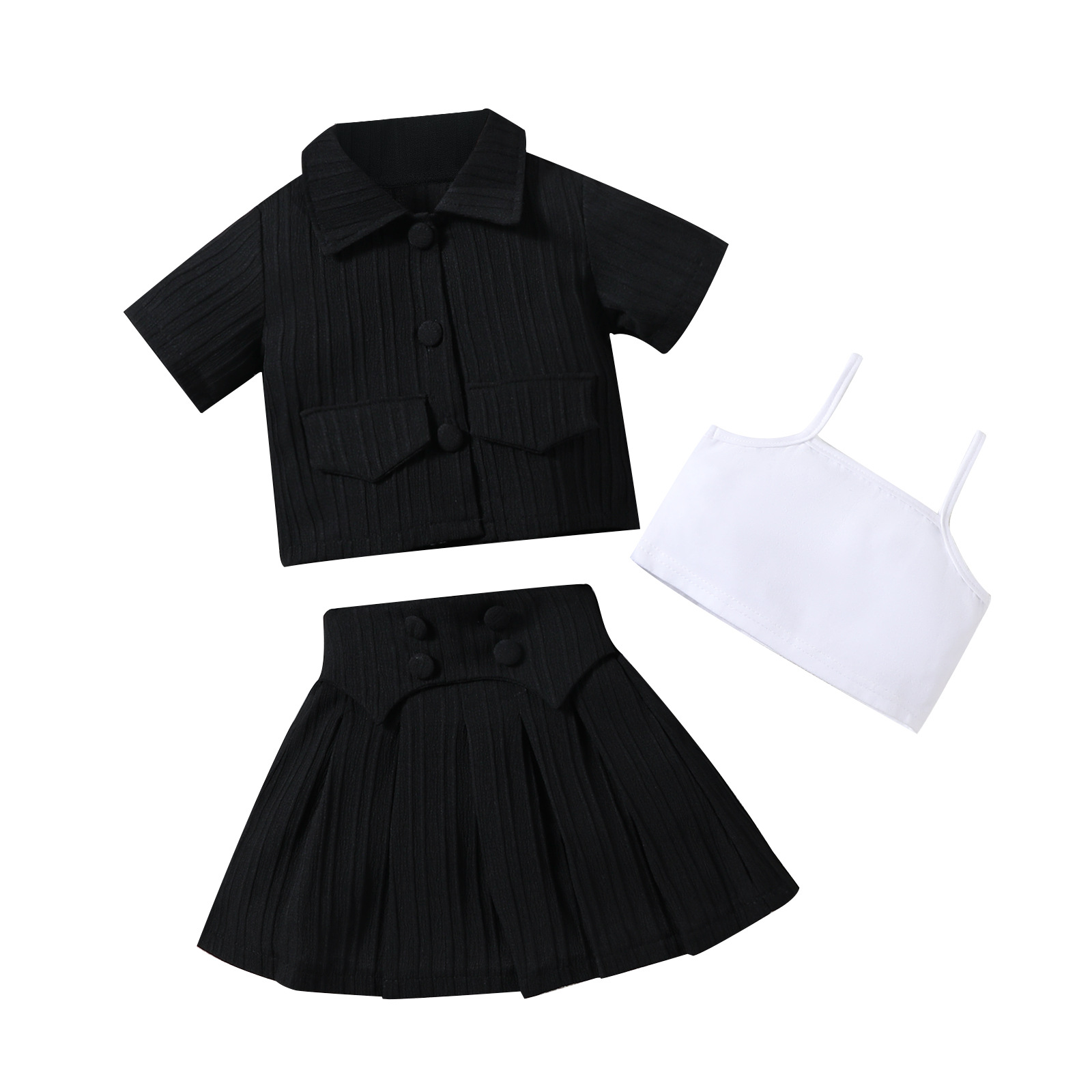 바오핀 아동복 국경 간 유럽과 미국의 여름 소녀 서양식 세트 줄무늬 옷깃 재킷 카미솔 주름 치마스토어 가기