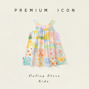 童装儿童挂脖吊带连衣裙2024夏季女童韩版油画风纯棉无袖背心裙女