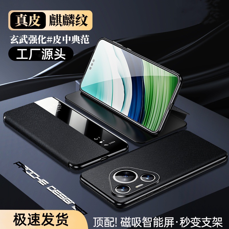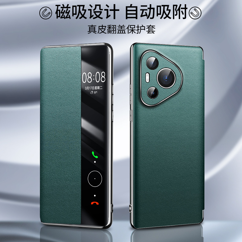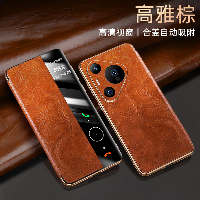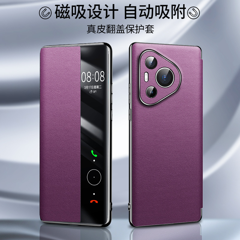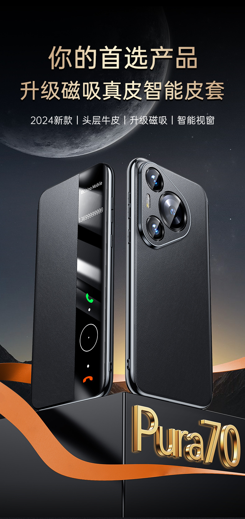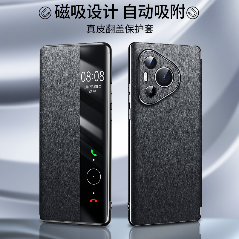Huawei Pura70pro 휴대 전화 케이스에 적합 정품 가죽 자기 플립 커버 70ultra 스마트 창 낙하 방지 커버스토어 가기