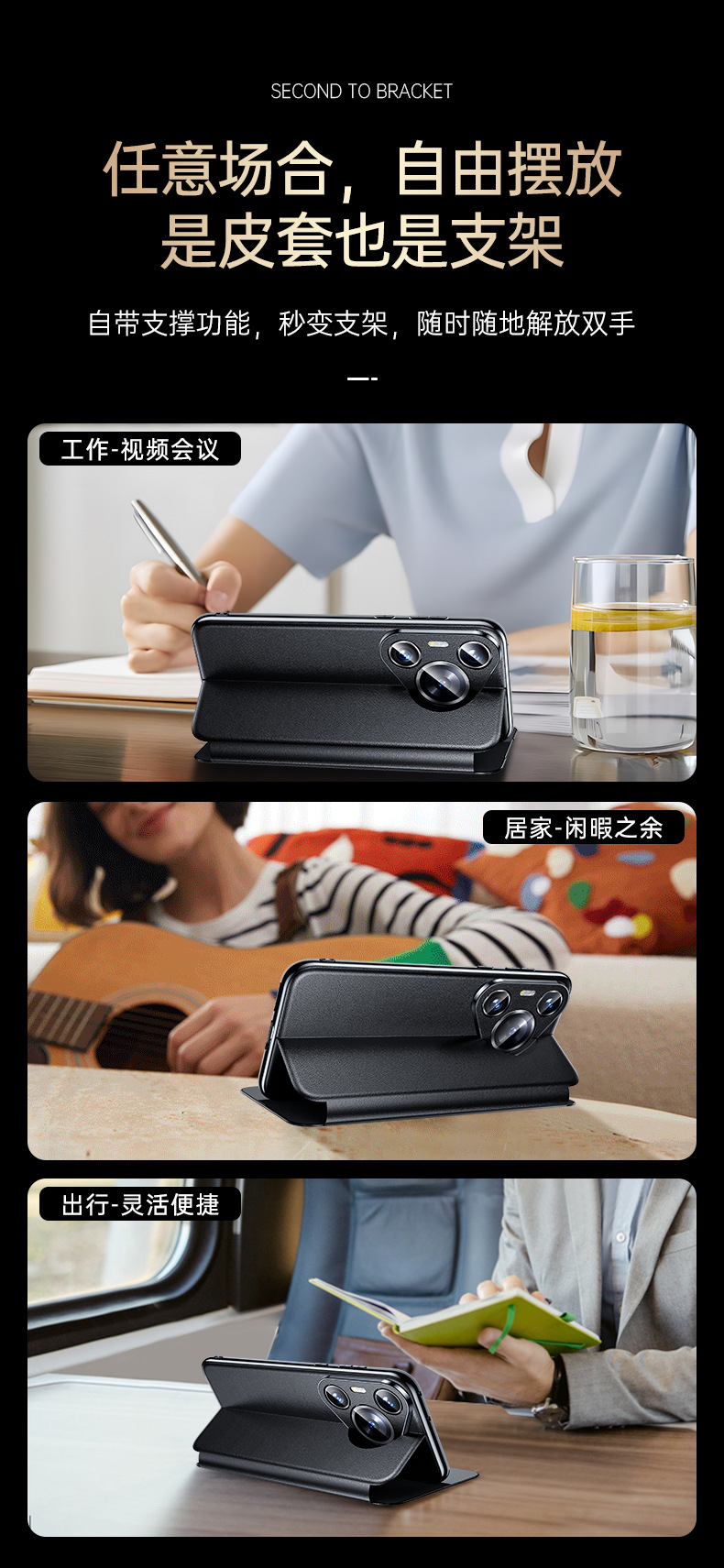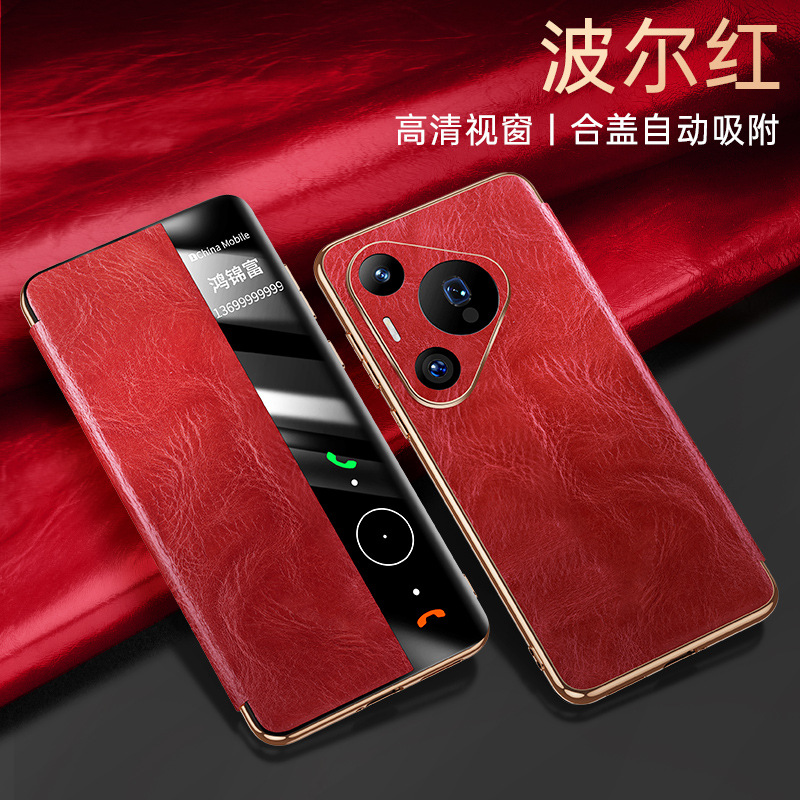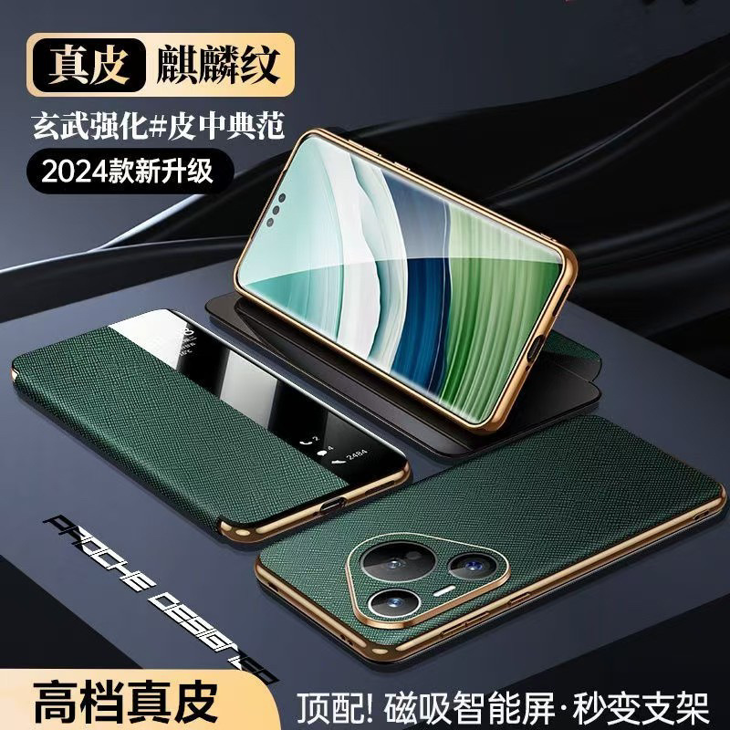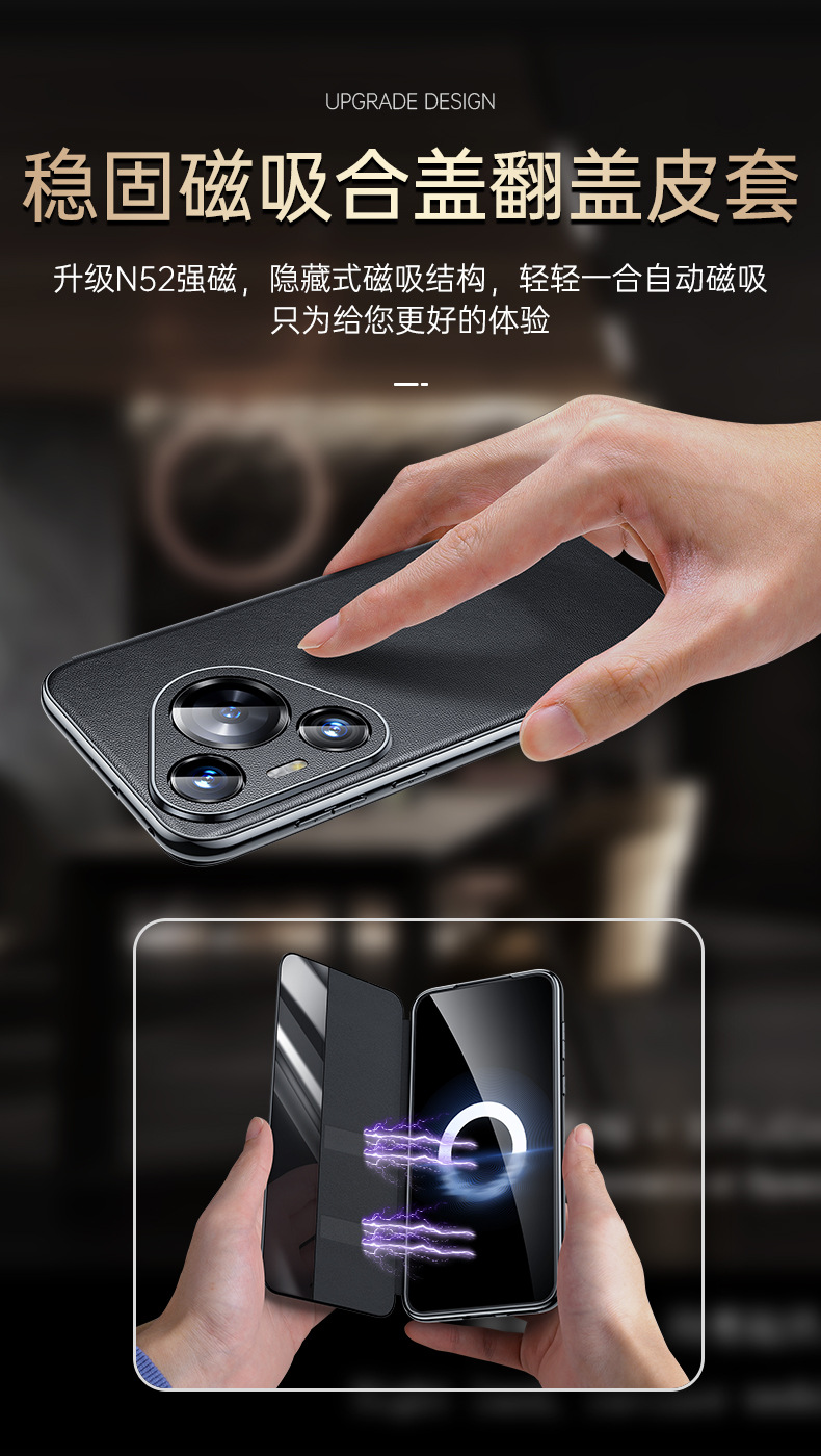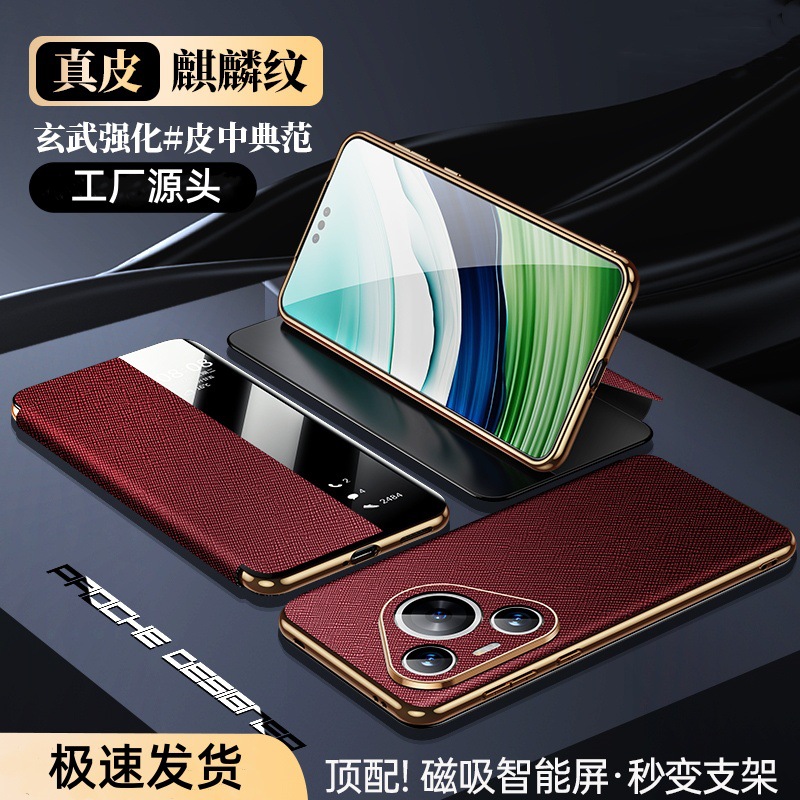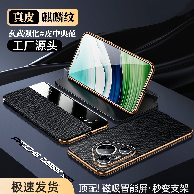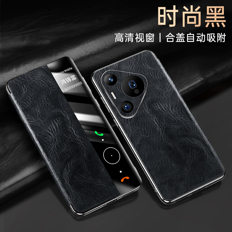 Huawei Pura70pro 휴대 전화 케이스에 적합 정품 가죽 자기 플립 커버 70ultra 스마트 창 낙하 방지 커버스토어 가기