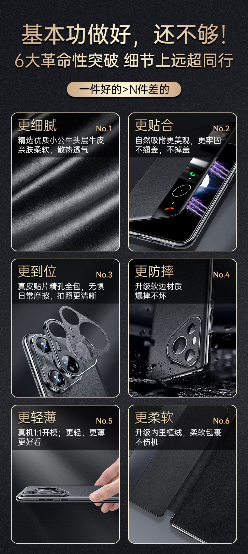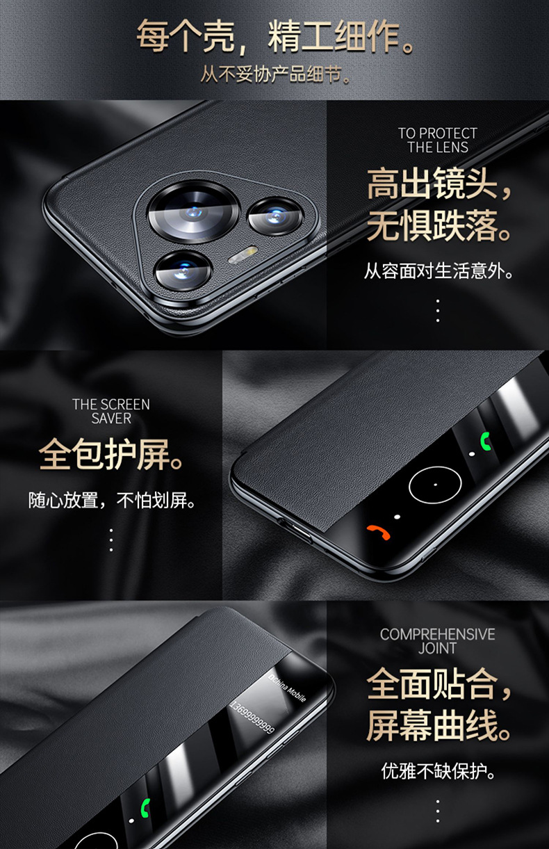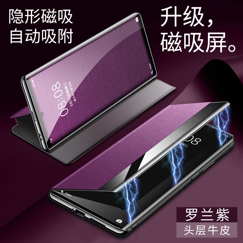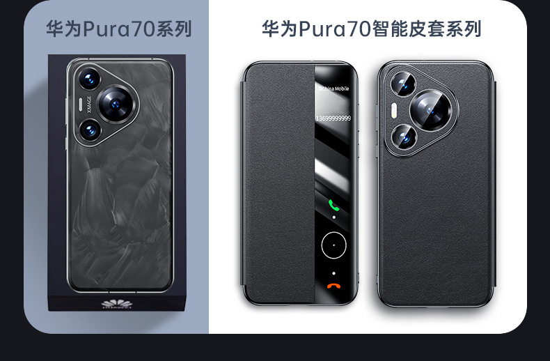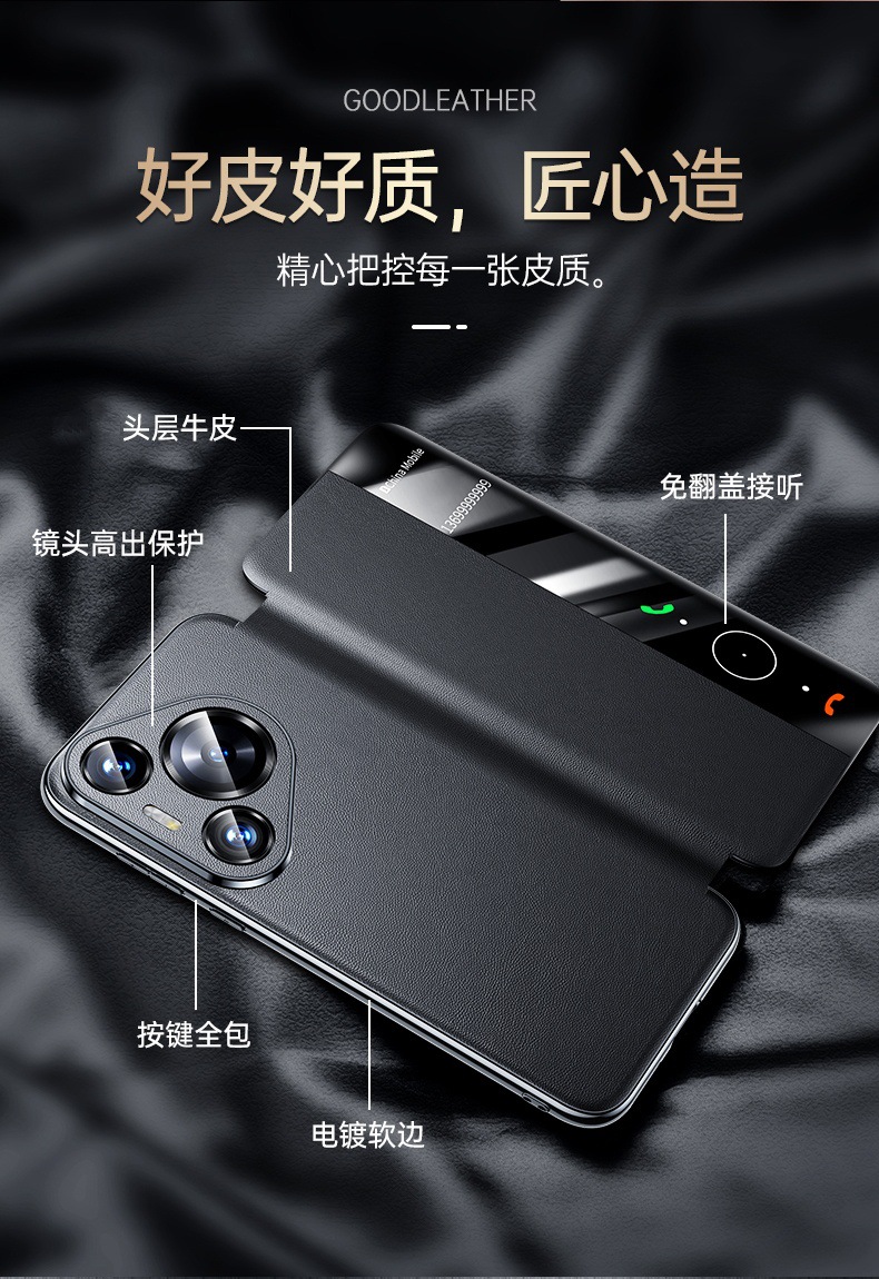 Huawei Pura70pro 휴대 전화 케이스에 적합 정품 가죽 자기 플립 커버 70ultra 스마트 창 낙하 방지 커버스토어 가기