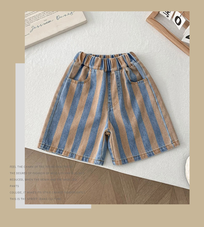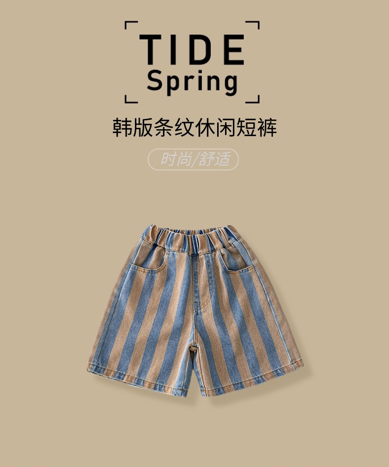 소년 유행 5 점 바지 줄무늬 캐주얼 바지 여름 얇은 2024 여름 새 아기 바지 한국 반바지스토어 가기