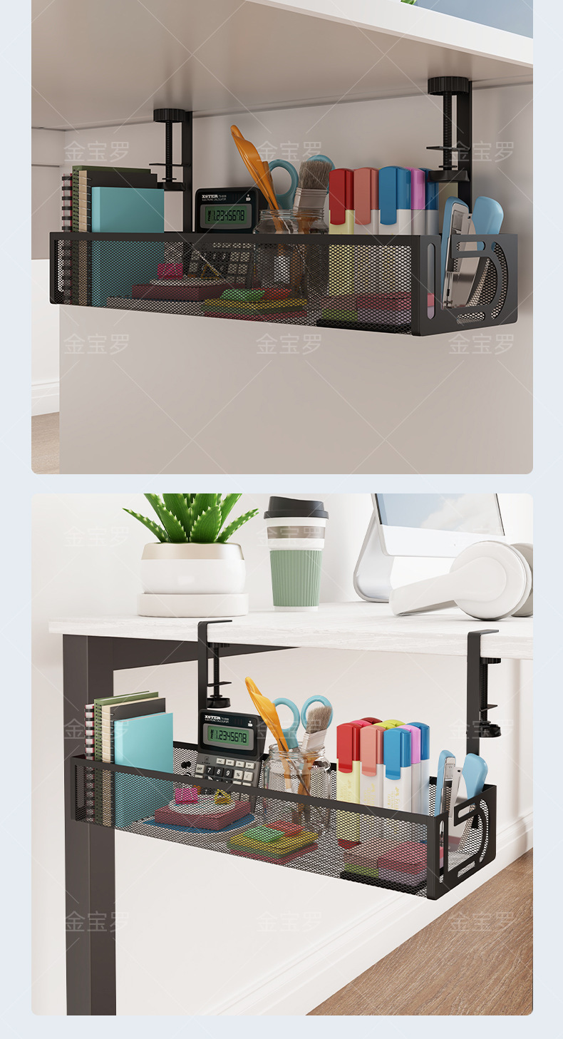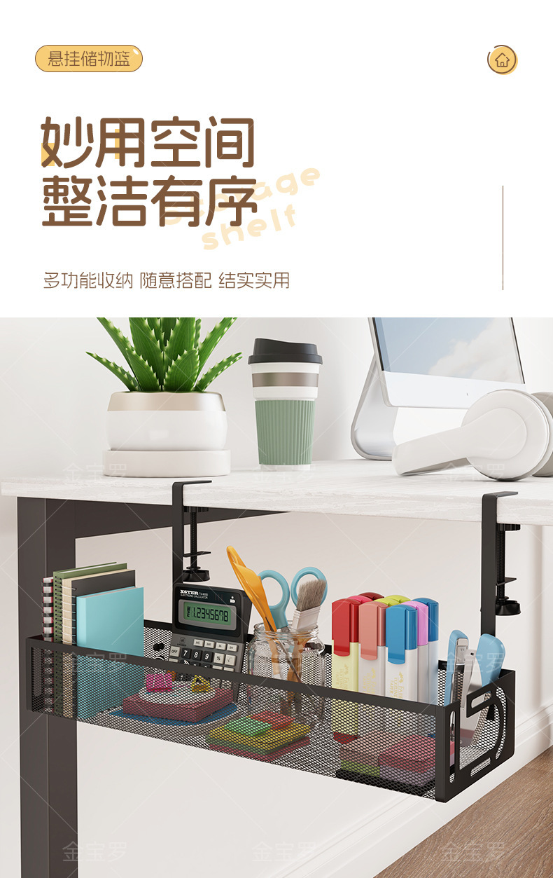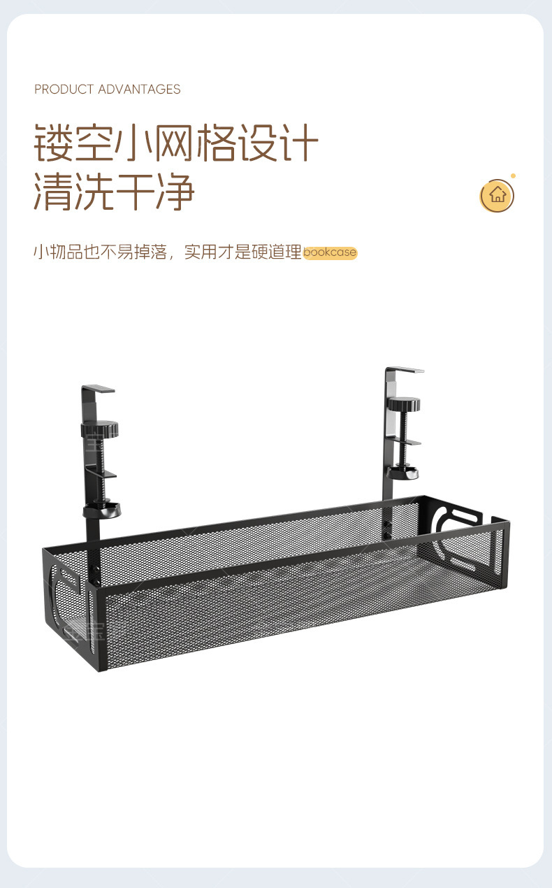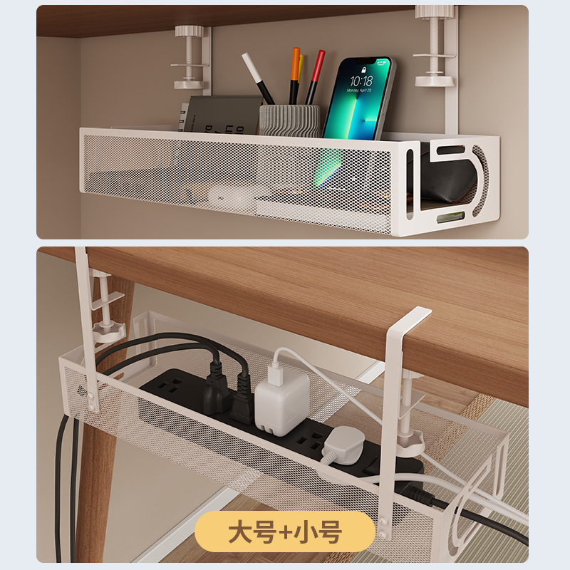 테이블 사이드 매달린 저장 바구니 펀치 프리 개폐식 조정 가능한 길이 테이블 아래 소켓 저장 랙 테이블 하단 보관 바구니