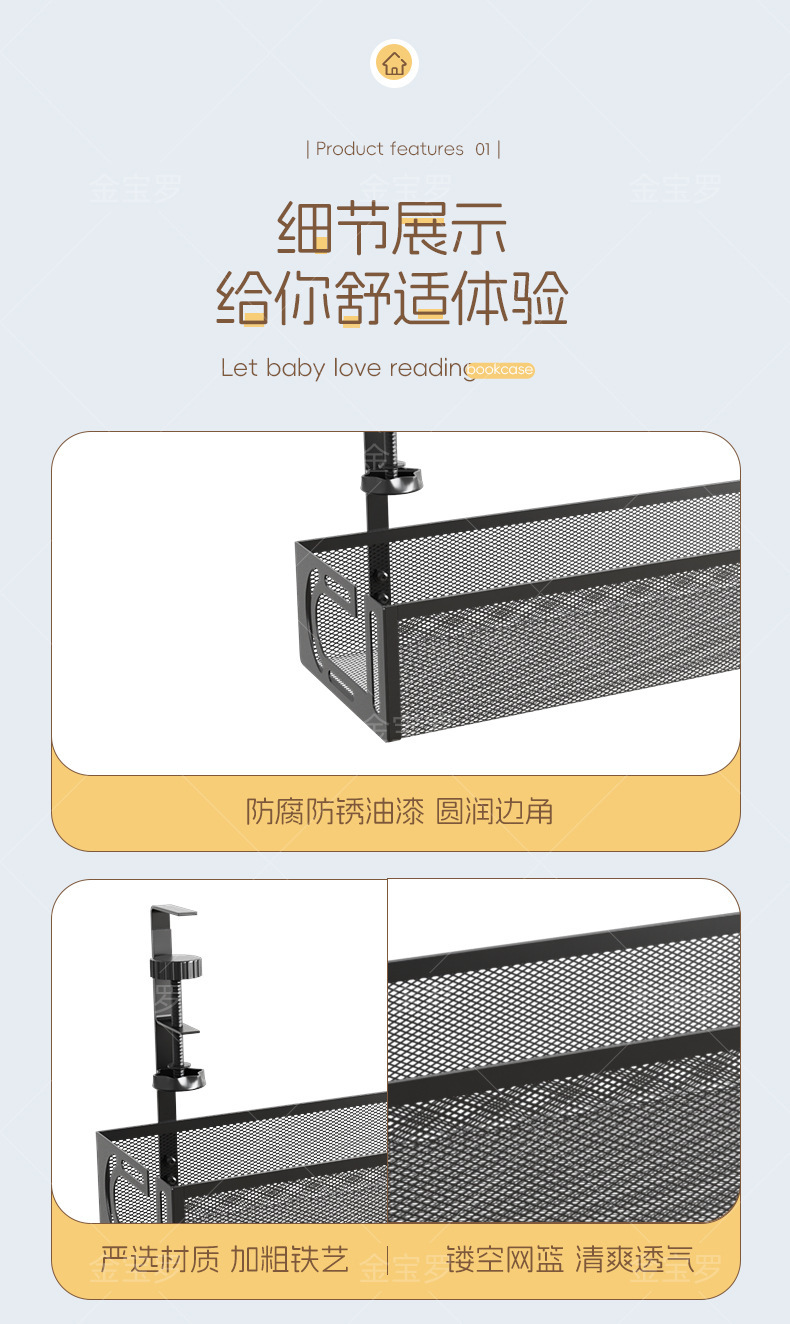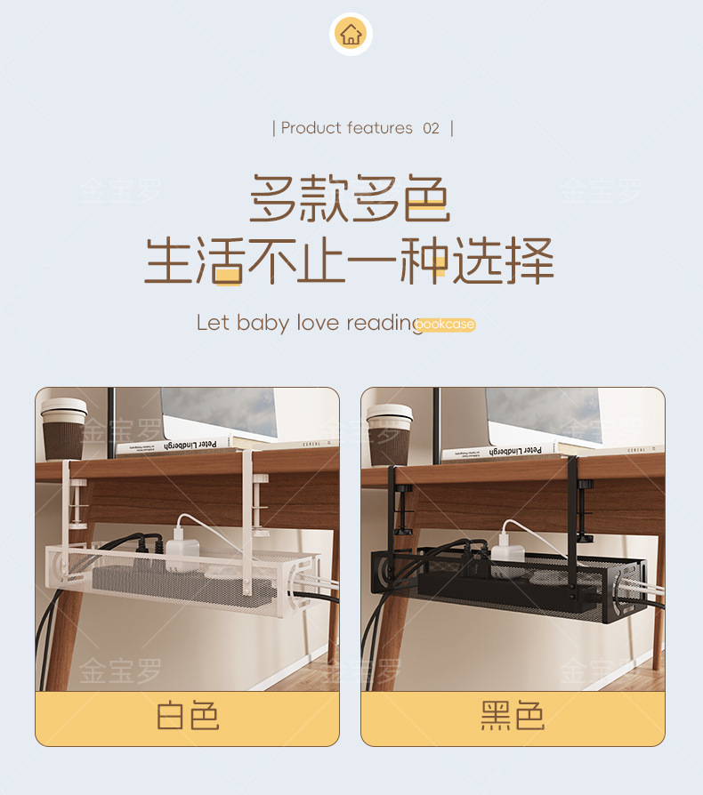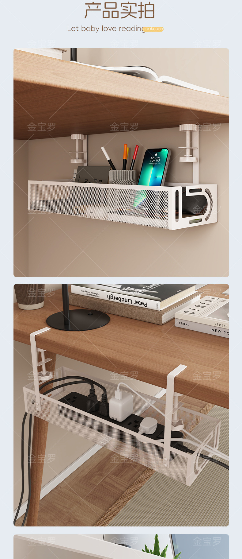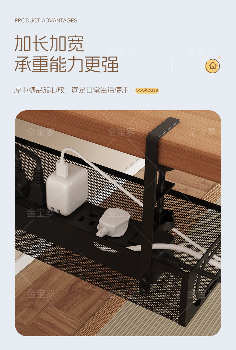 테이블 사이드 매달린 저장 바구니 펀치 프리 개폐식 조정 가능한 길이 테이블 아래 소켓 저장 랙 테이블 하단 보관 바구니