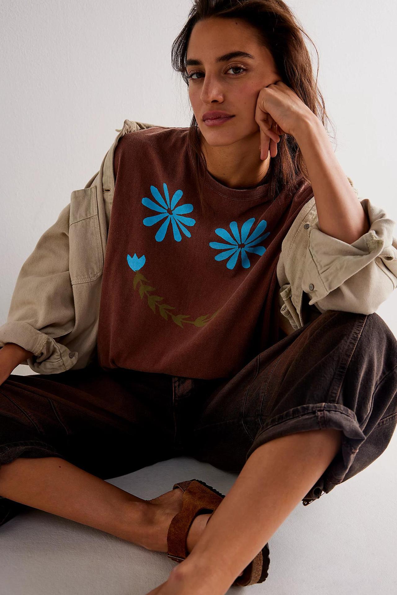 2024 여름 여성 의류 아마존 유럽과 미국의 새로운 라운드 넥 인쇄 풀오버 짧은 소매 느슨한 캐주얼 티셔츠 탑