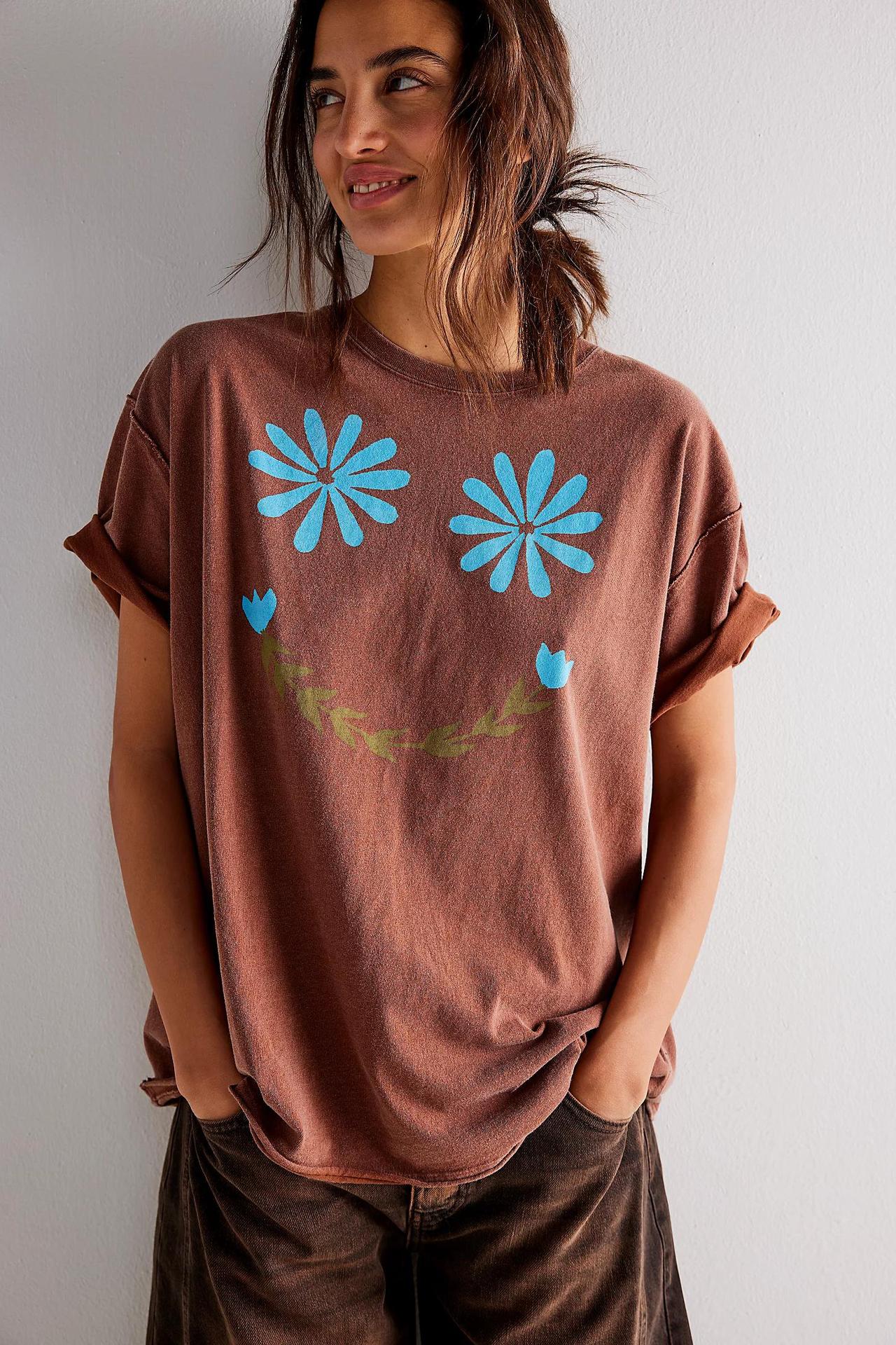 2024 여름 여성 의류 아마존 유럽과 미국의 새로운 라운드 넥 인쇄 풀오버 짧은 소매 느슨한 캐주얼 티셔츠 탑스토어 가기