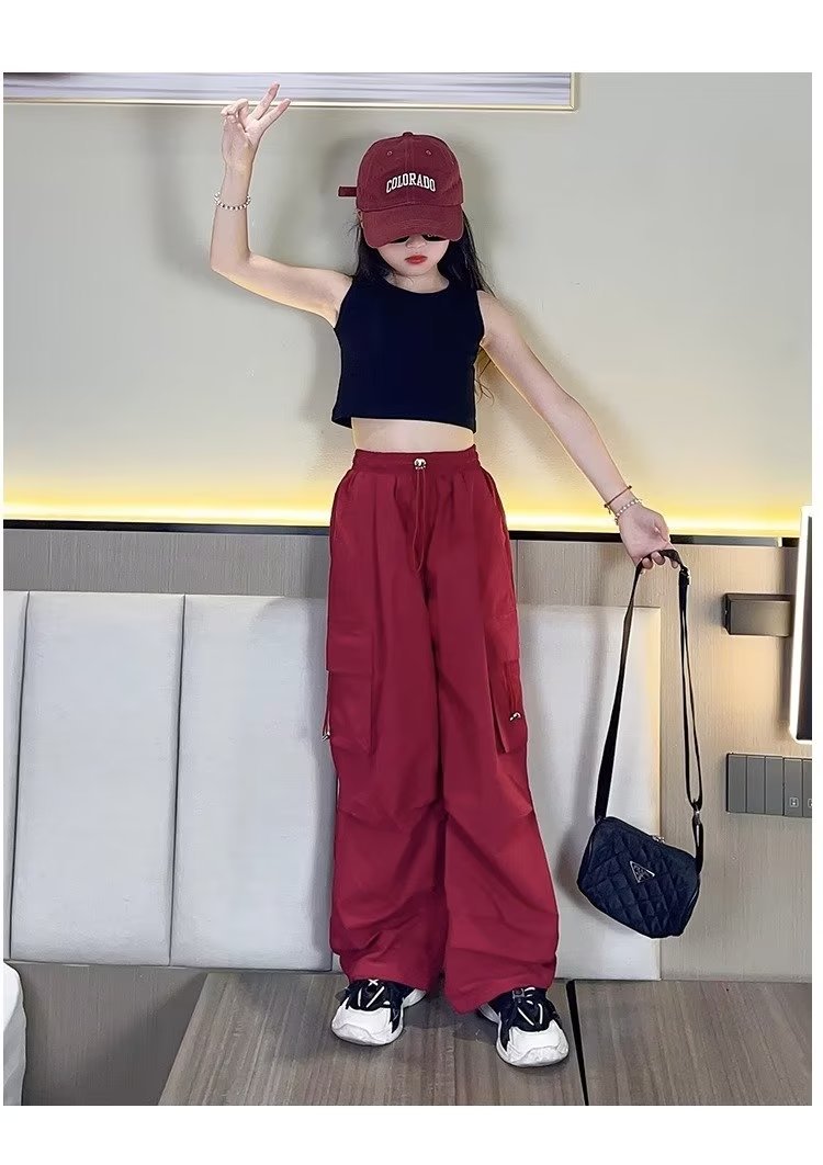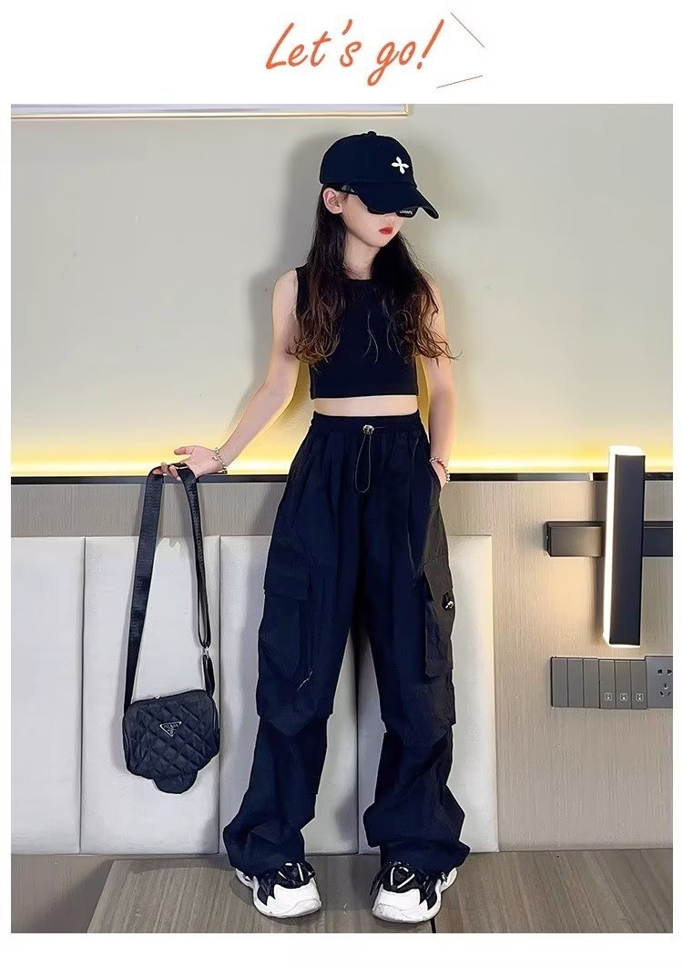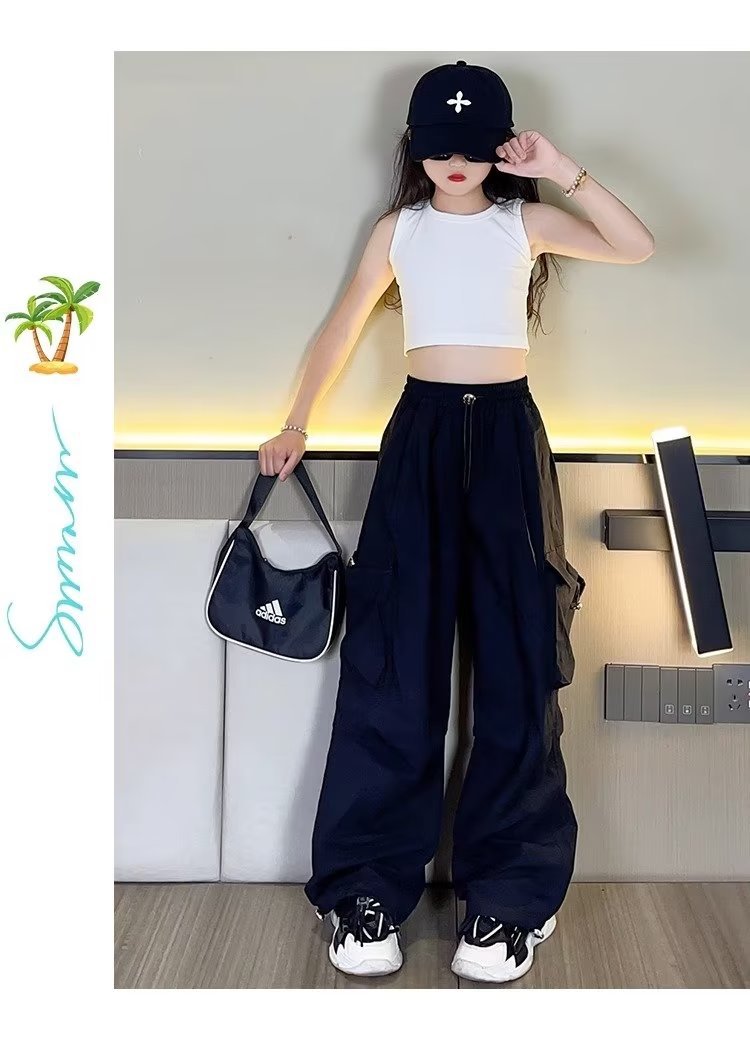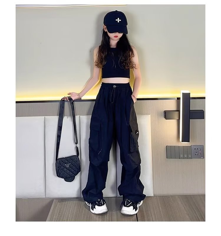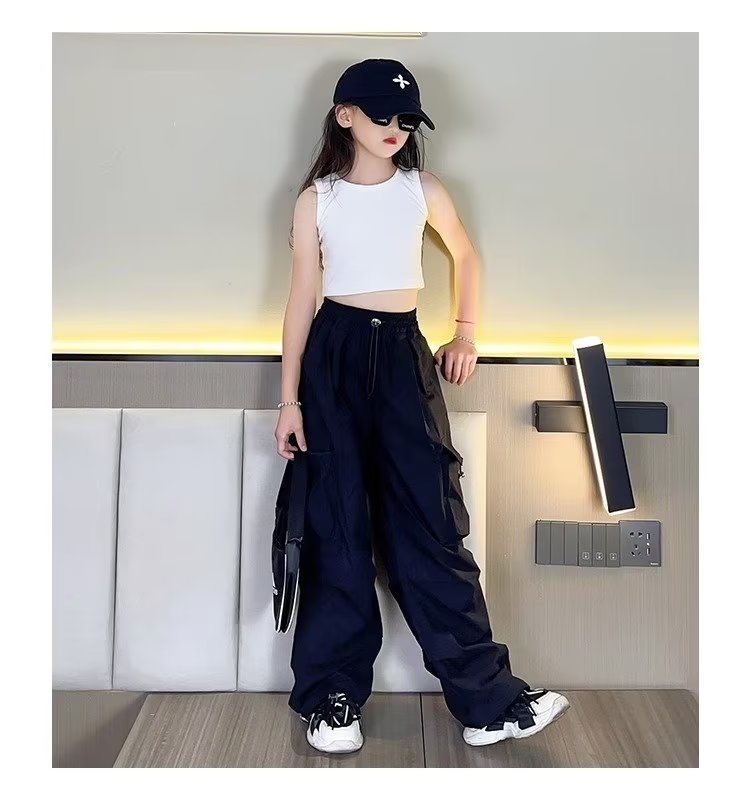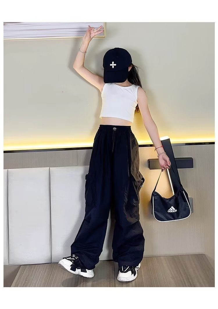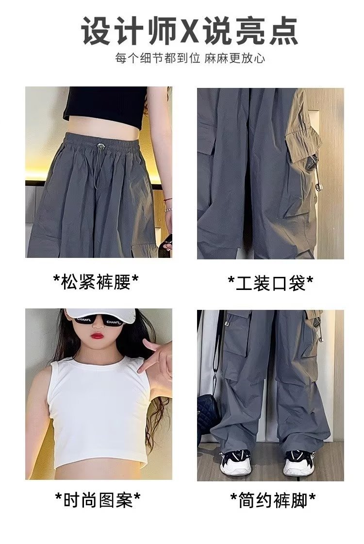 소녀의 봄과 여름 코일 바지 2024 큰 어린이 여름 재즈 스트리트 댄스 스포츠 바지 어린이 캐주얼 바지