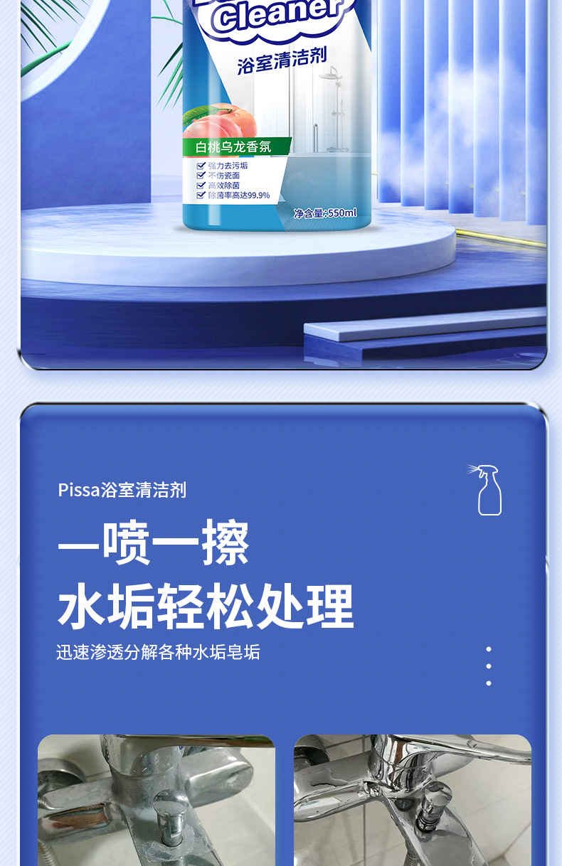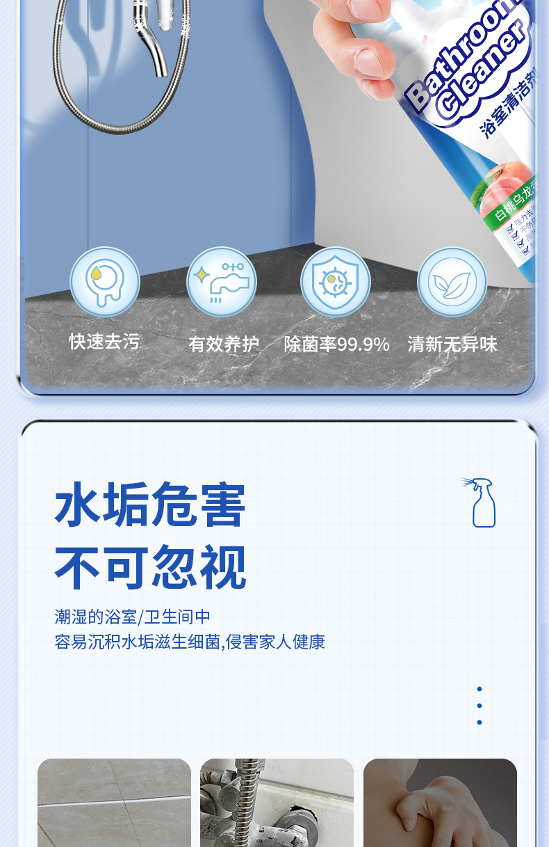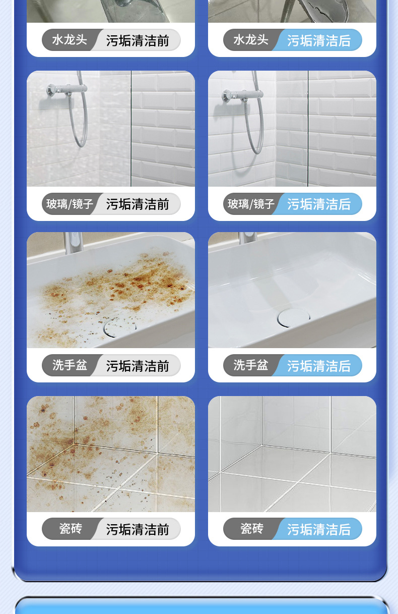 욕실 청소기 유리 descaling 화장실 물 얼룩 수도꼭지 청소 화장실 바닥 타일 강한 오염 제거 및 살균