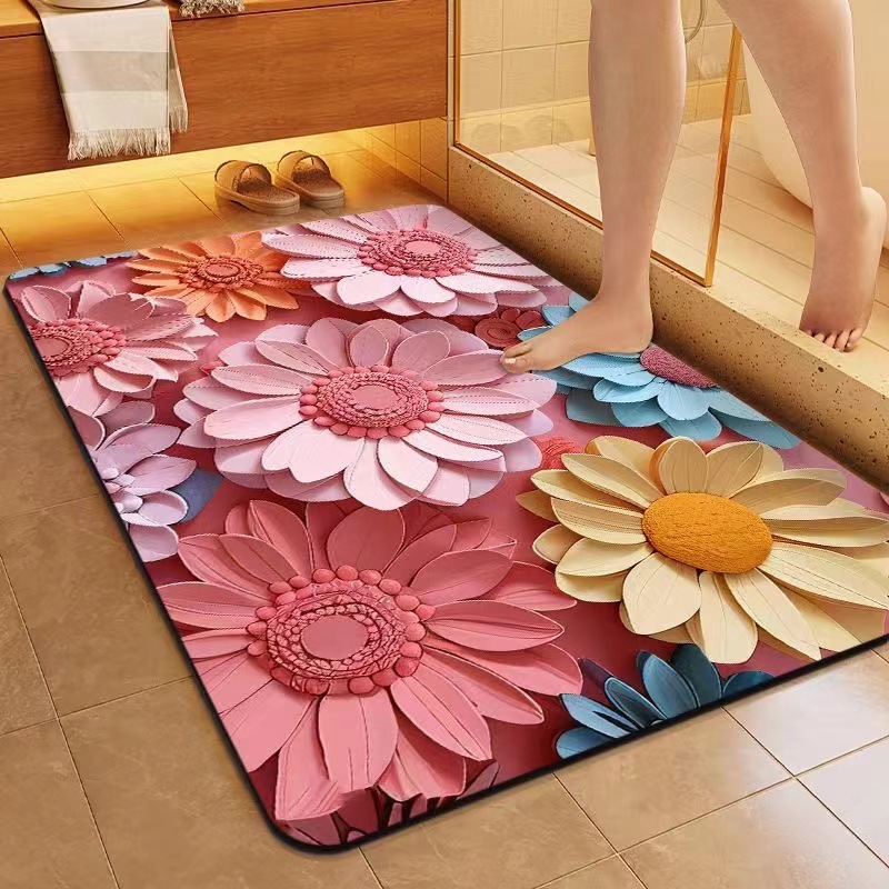 국경 3 차원 꽃 바닥 매트 욕실 Diatom 진흙 미끄럼 방지 먼지 방지 빠른 건조 바닥 매트 가정용 흡수성 카펫
