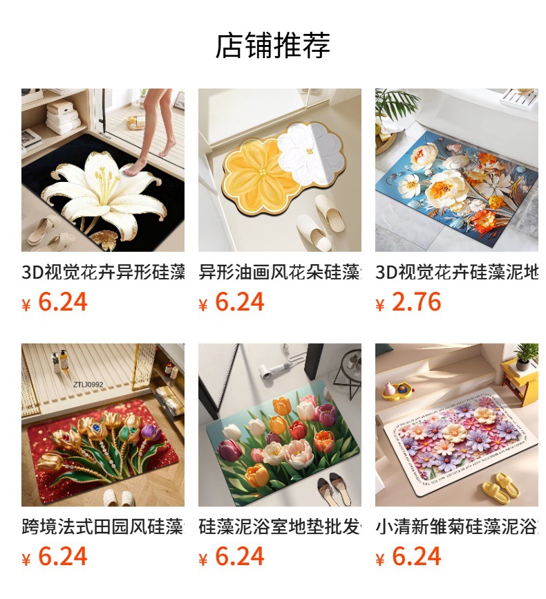 국경 3 차원 꽃 바닥 매트 욕실 Diatom 진흙 미끄럼 방지 먼지 방지 빠른 건조 바닥 매트 가정용 흡수성 카펫스토어 가기