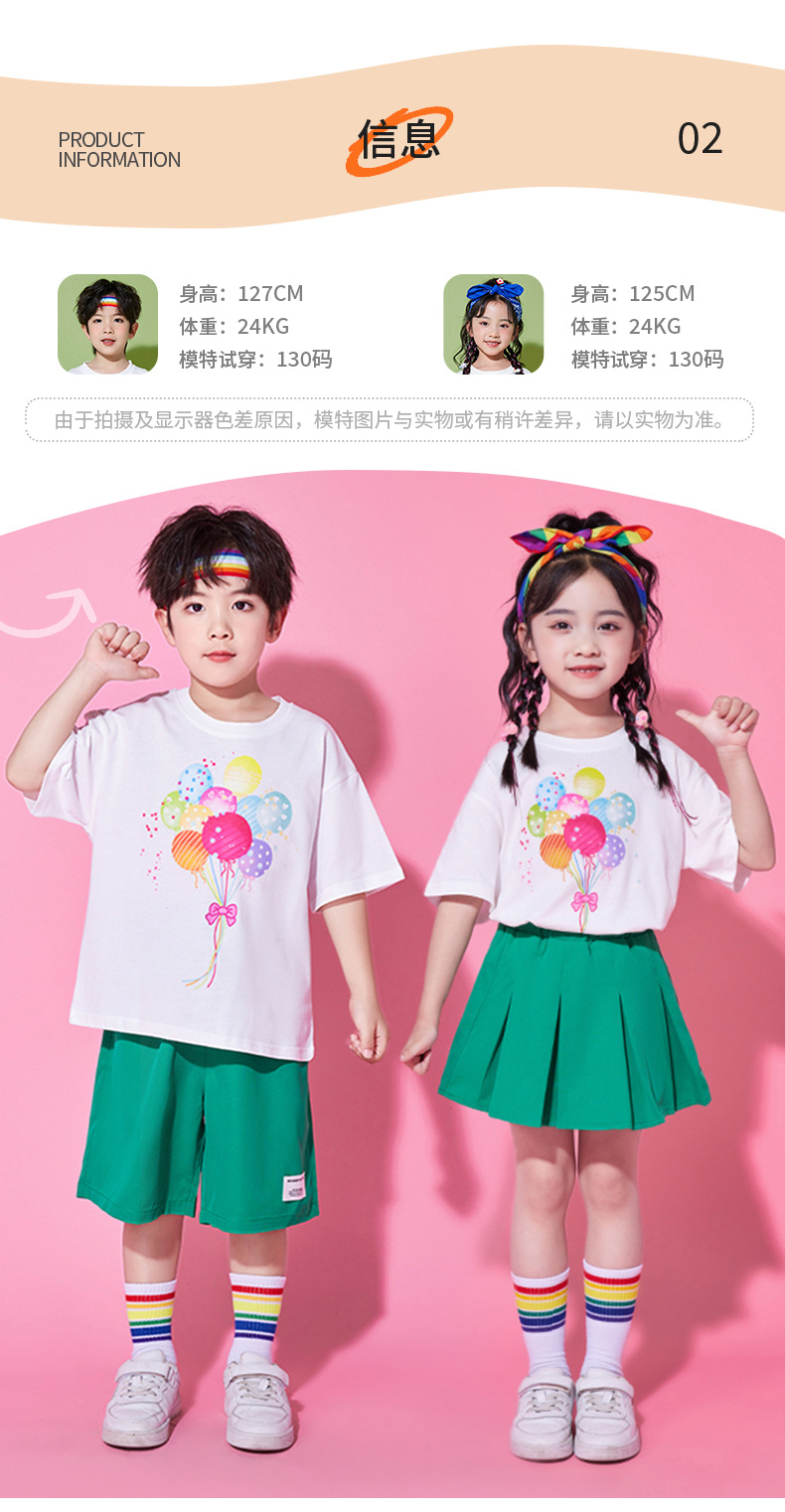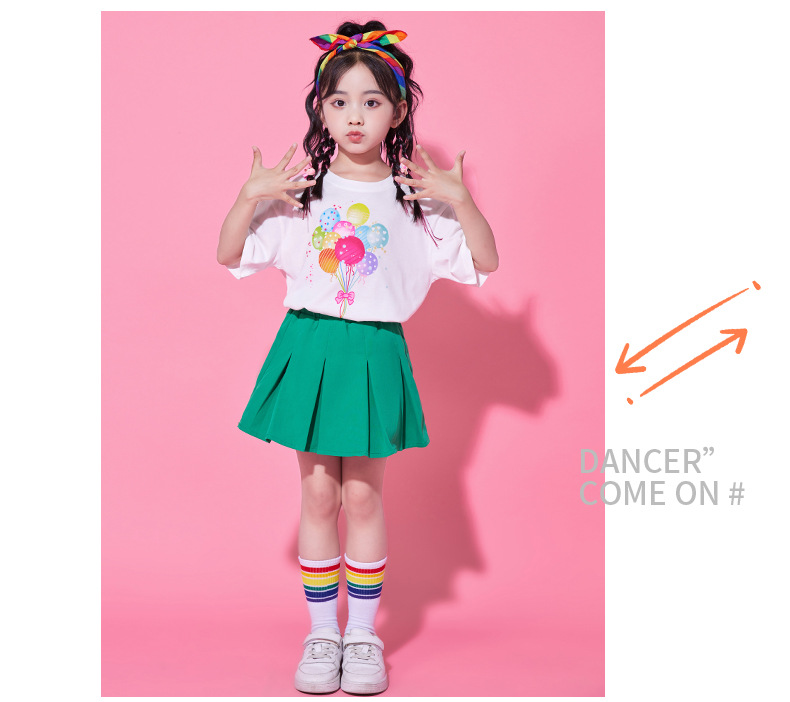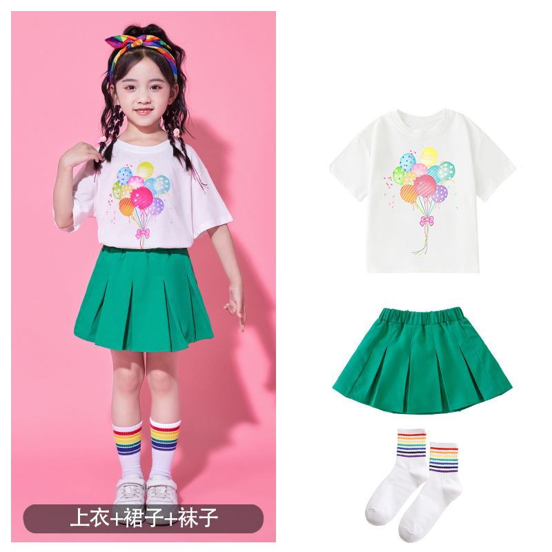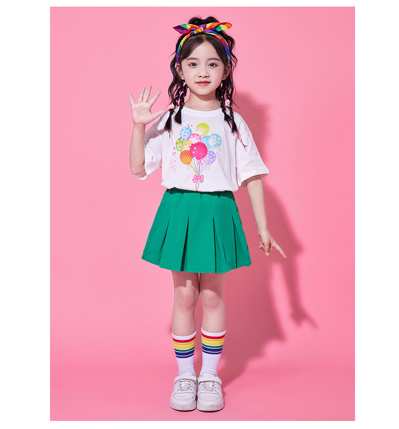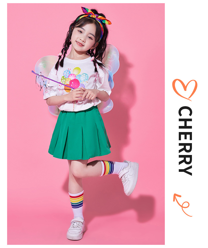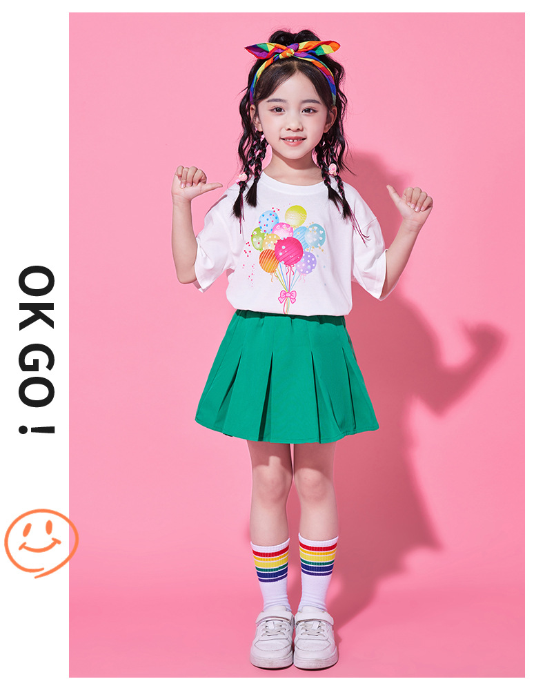 • 763 컬러풀 벌룬 화이트 반팔 + 702 그린 스커트 + 레인보우 양말