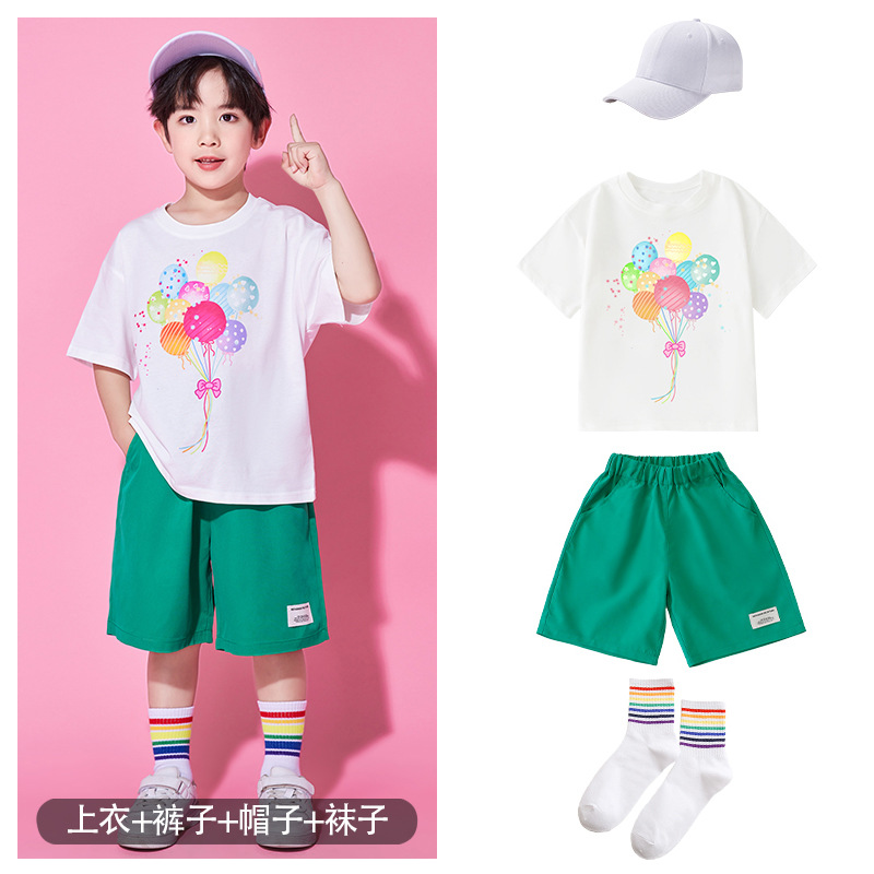 • 763 컬러 벌룬 화이트 반팔 + 701 그린 반바지 + 화이트 야구 모자 + 레인보우 양말