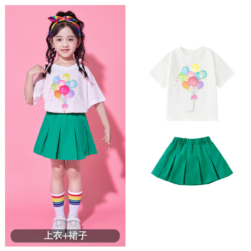 • 763 컬러풀 벌룬 화이트 반팔 + 702 그린 스커트