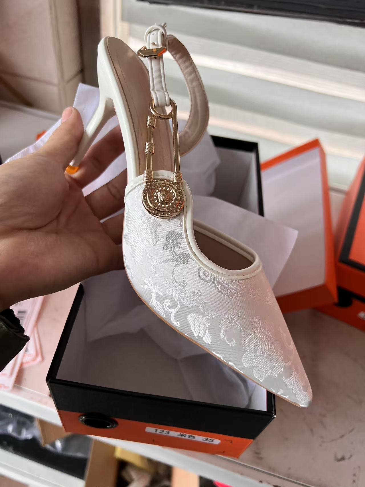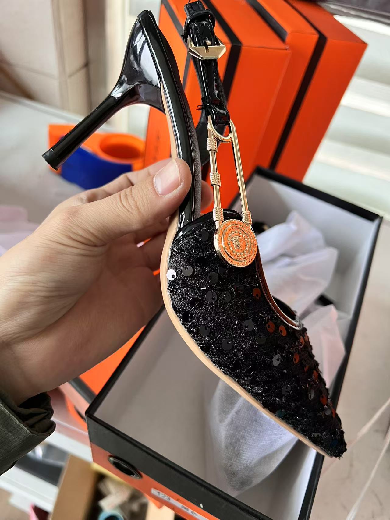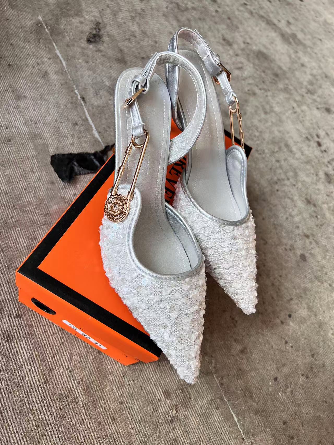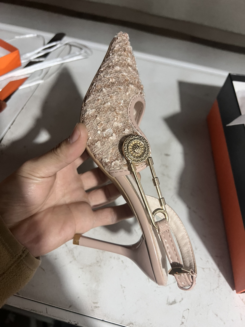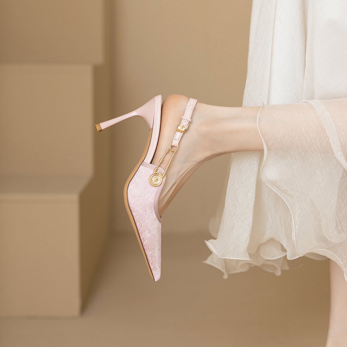 아름다운 뾰족한 스틸레토 힐 하이힐 샌들 여성용 리어 2024 여름 새로운 도착 Sequin 연회 버클 하이힐 신발스토어 가기