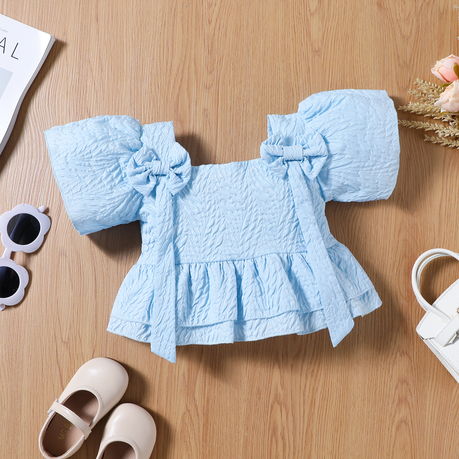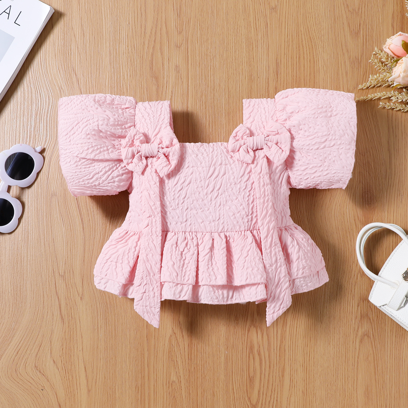 바옥신 아동복 국경 간 유럽과 미국의 여름 패션 걸스 세트 보우 플라잉 슬리브 탑 레이스 반바지