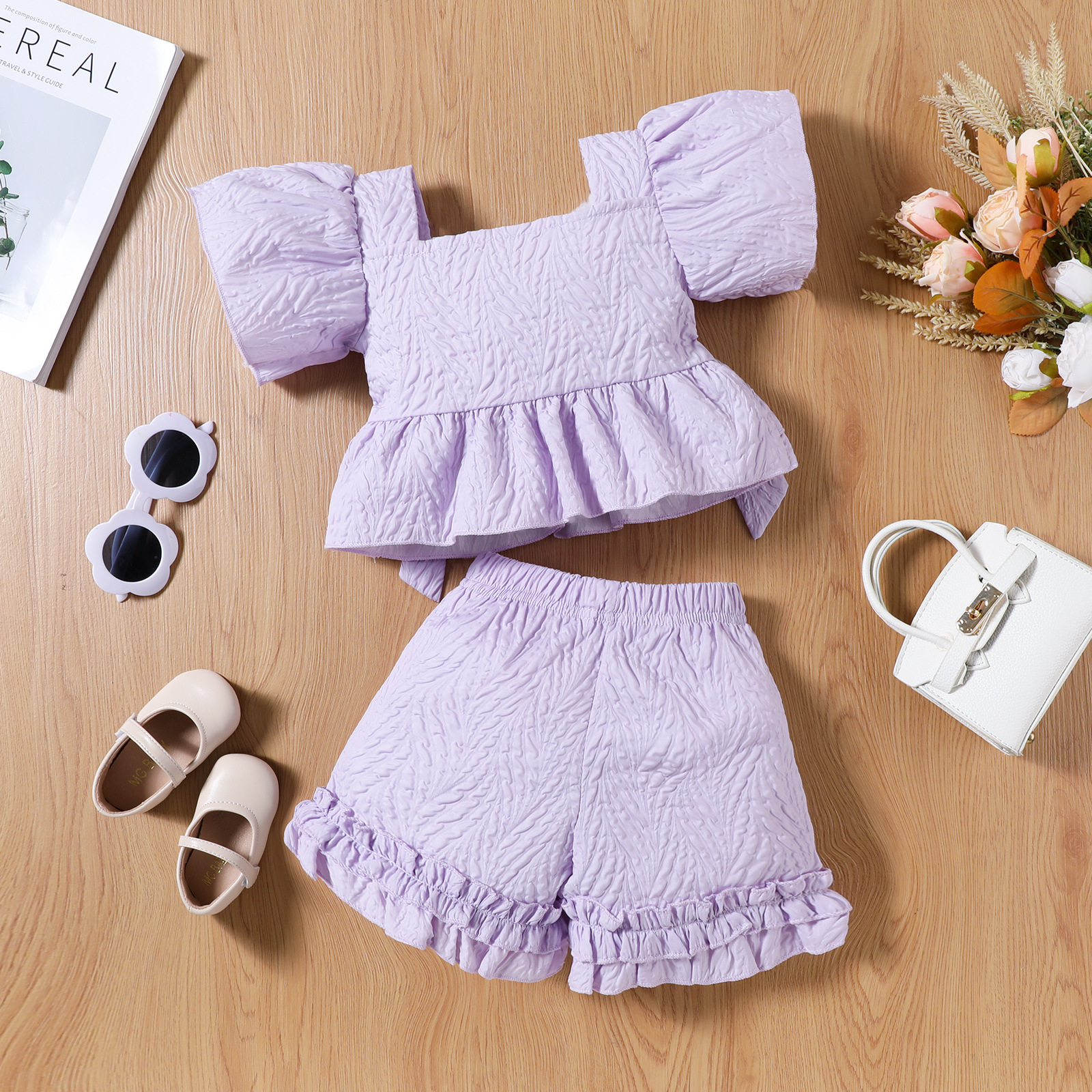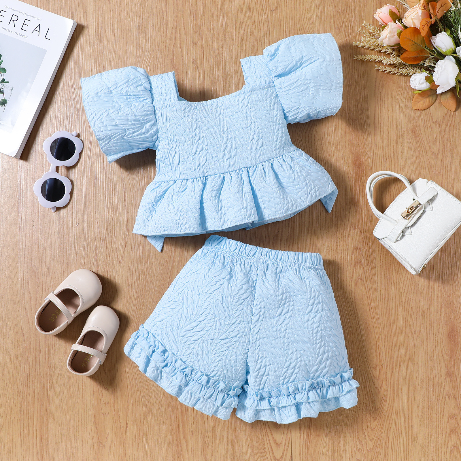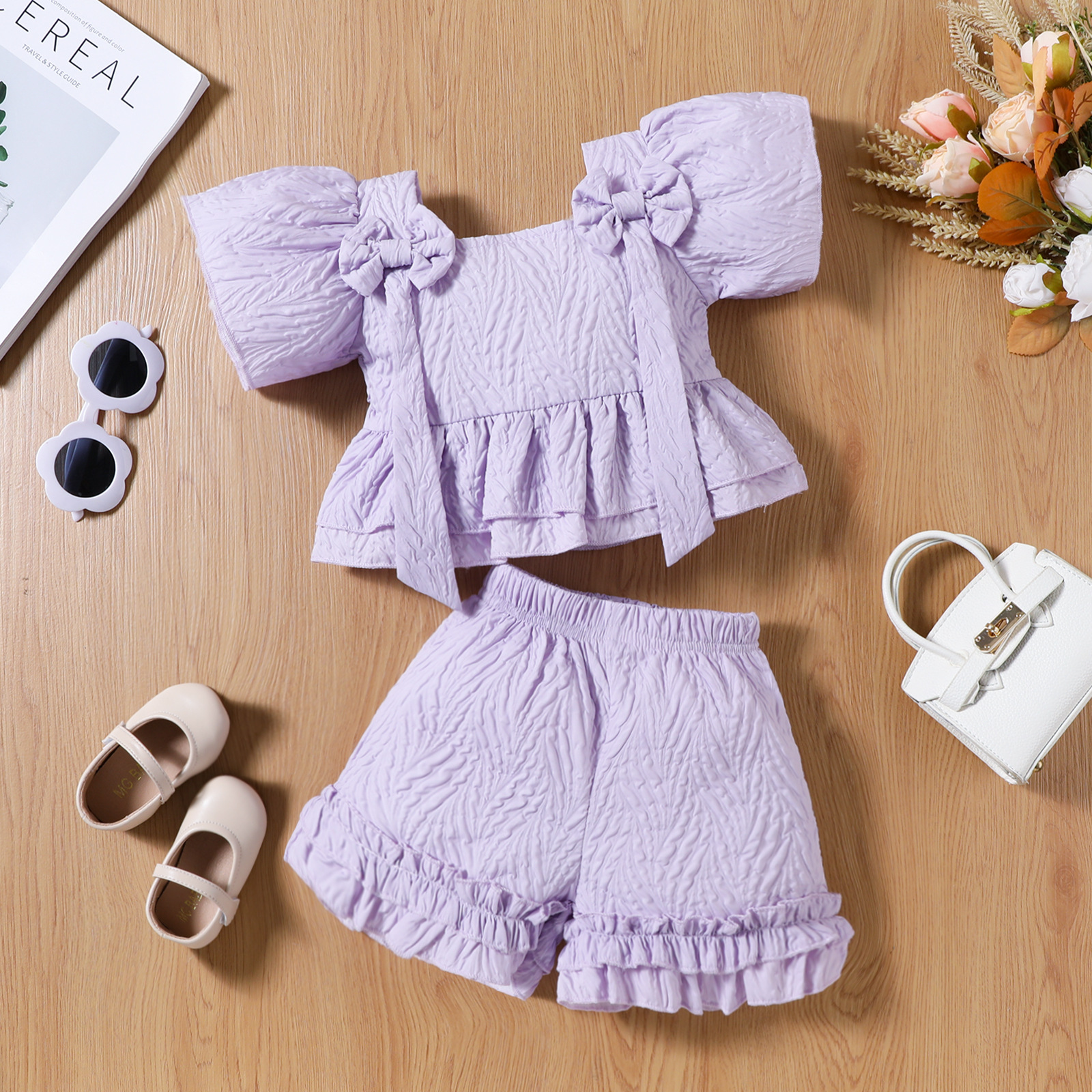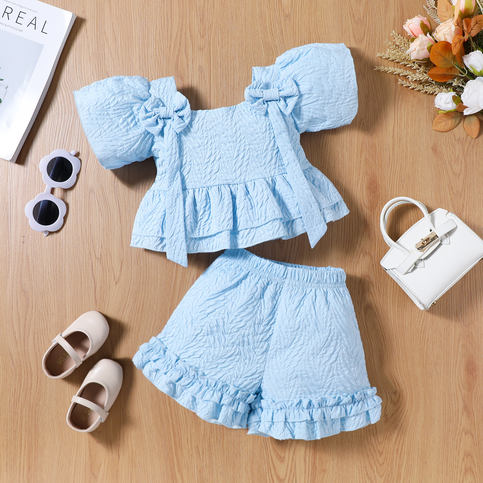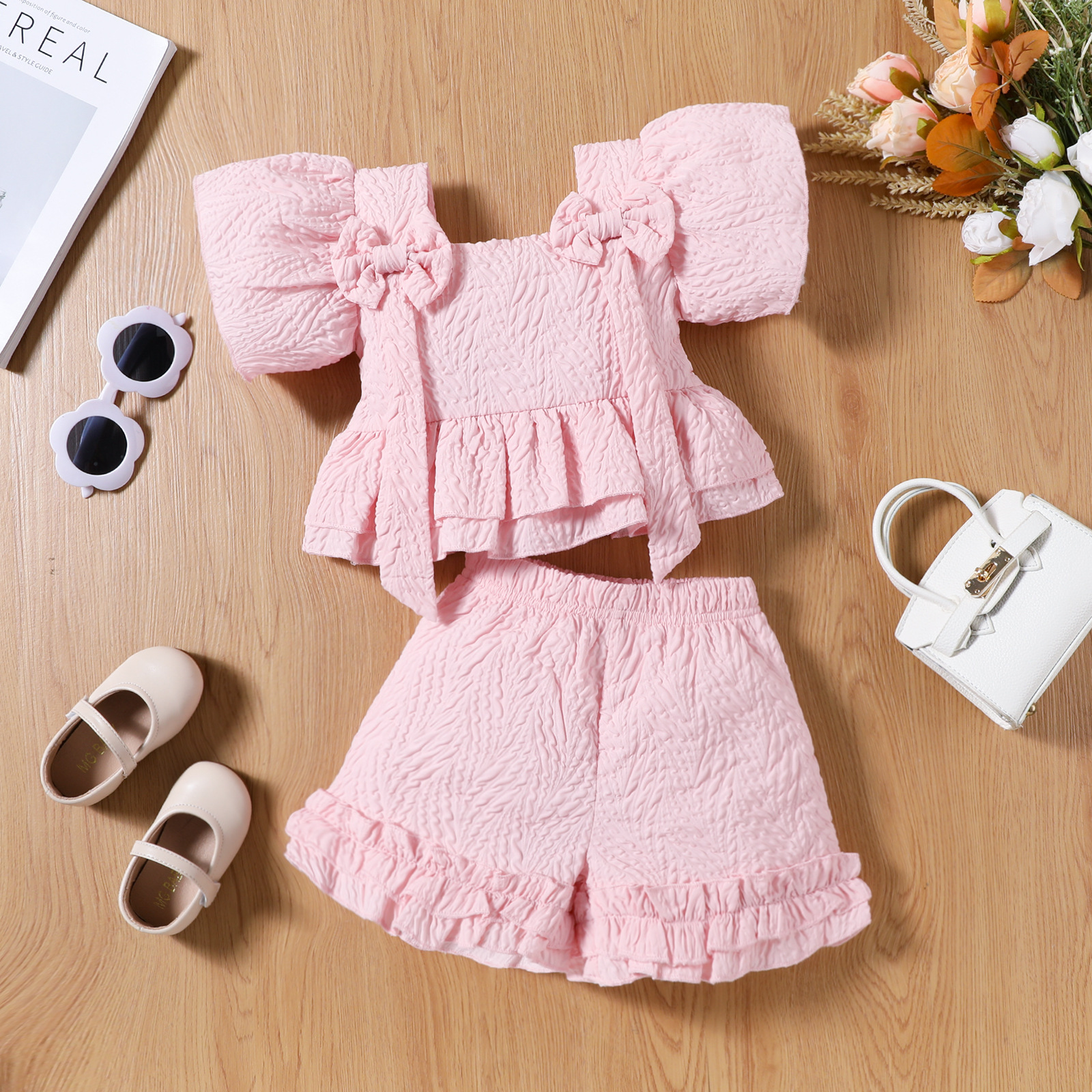 바옥신 아동복 국경 간 유럽과 미국의 여름 패션 걸스 세트 보우 플라잉 슬리브 탑 레이스 반바지스토어 가기