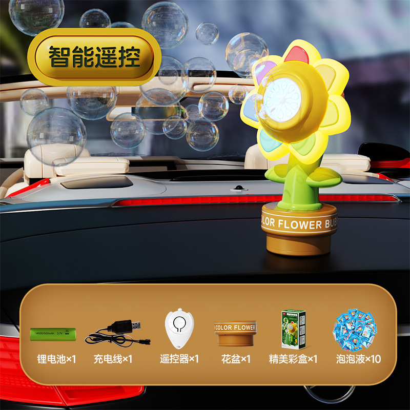 국경 7 색 꽃 거품 기계 어린이 전기 자동 핸드 헬드 라이트 스윙 부는 거품 해바라기 거품 기계스토어 가기