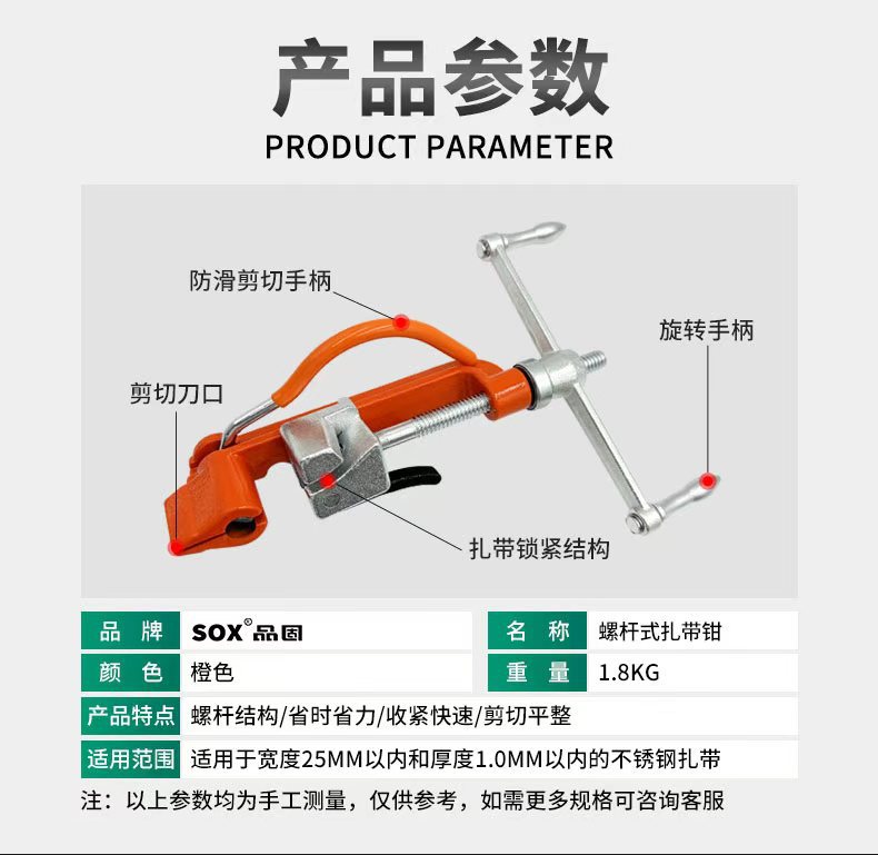 【产品应用】 适用于不锈钢/尼龙扎带的紧固,收紧,切割