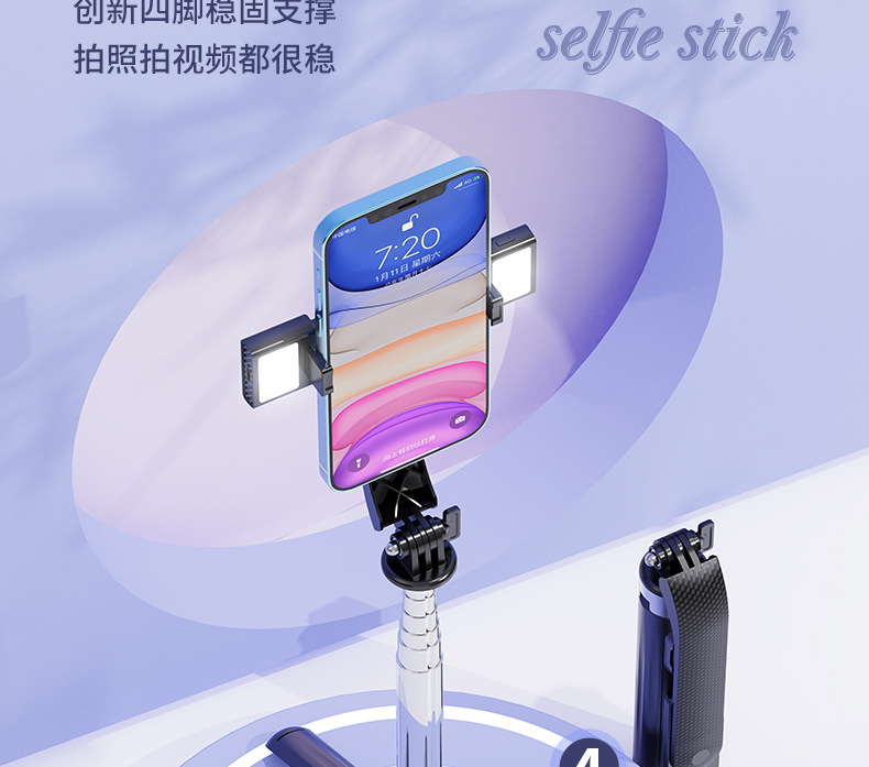 셀프 타이머 스틱 안티 쉐이크 개폐식 블루투스 리모컨 네발 라이브 휴대 전화 스탠드 셀프 타이머 스틱 안티 쉐이크 접이식스토어 가기